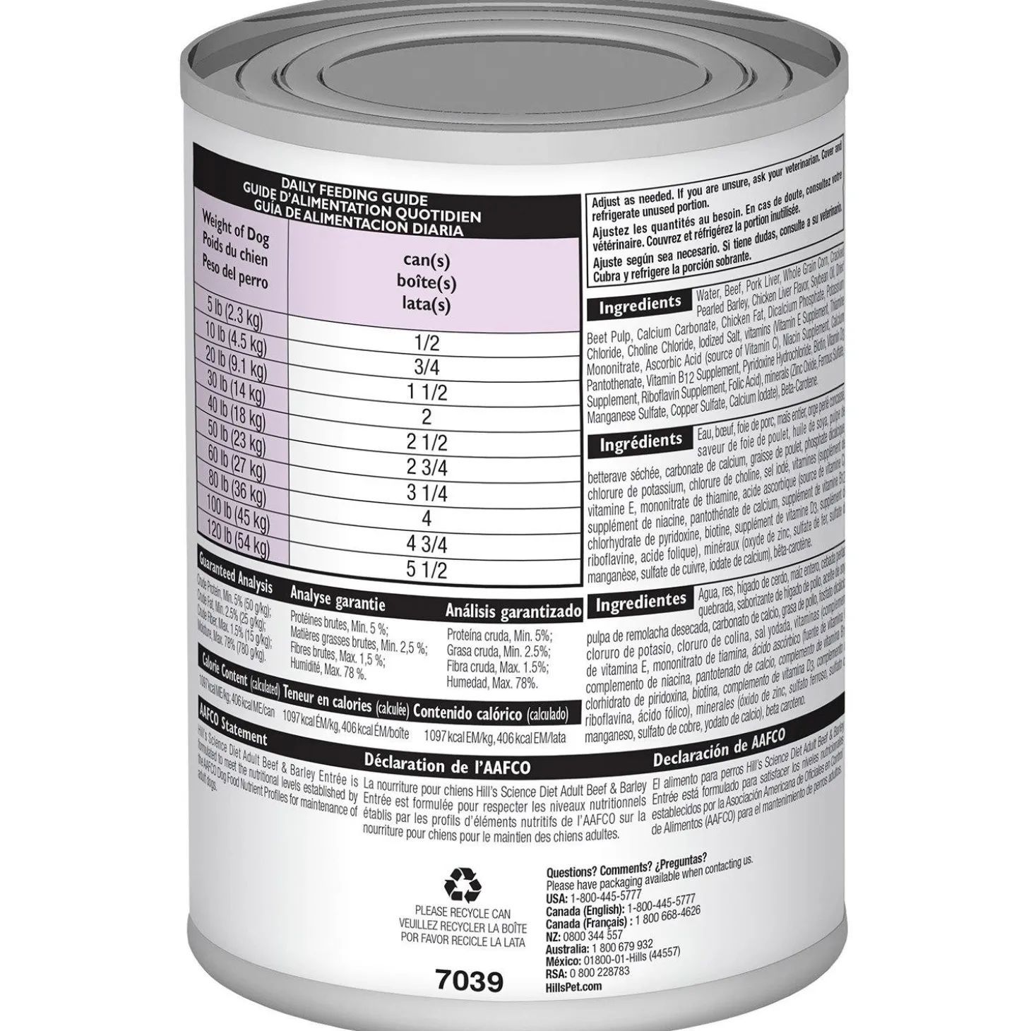 Hill’s Science Diet Beef & Barley Entree Adult Dog Food will give your grown dog the premium nutrition they deserve. This canned adult dog food made with natural ingredients is a delicious way to provide precisely balanced nutrition and support the overall health and wellbeing of your pet. Purposely made with easily digestible ingredients, this canned pet food supports your adult dog’s skin and coat with omega-6 fatty acids and vitamin E, while the high-quality protein from real beef helps your grown dog maintain muscle.