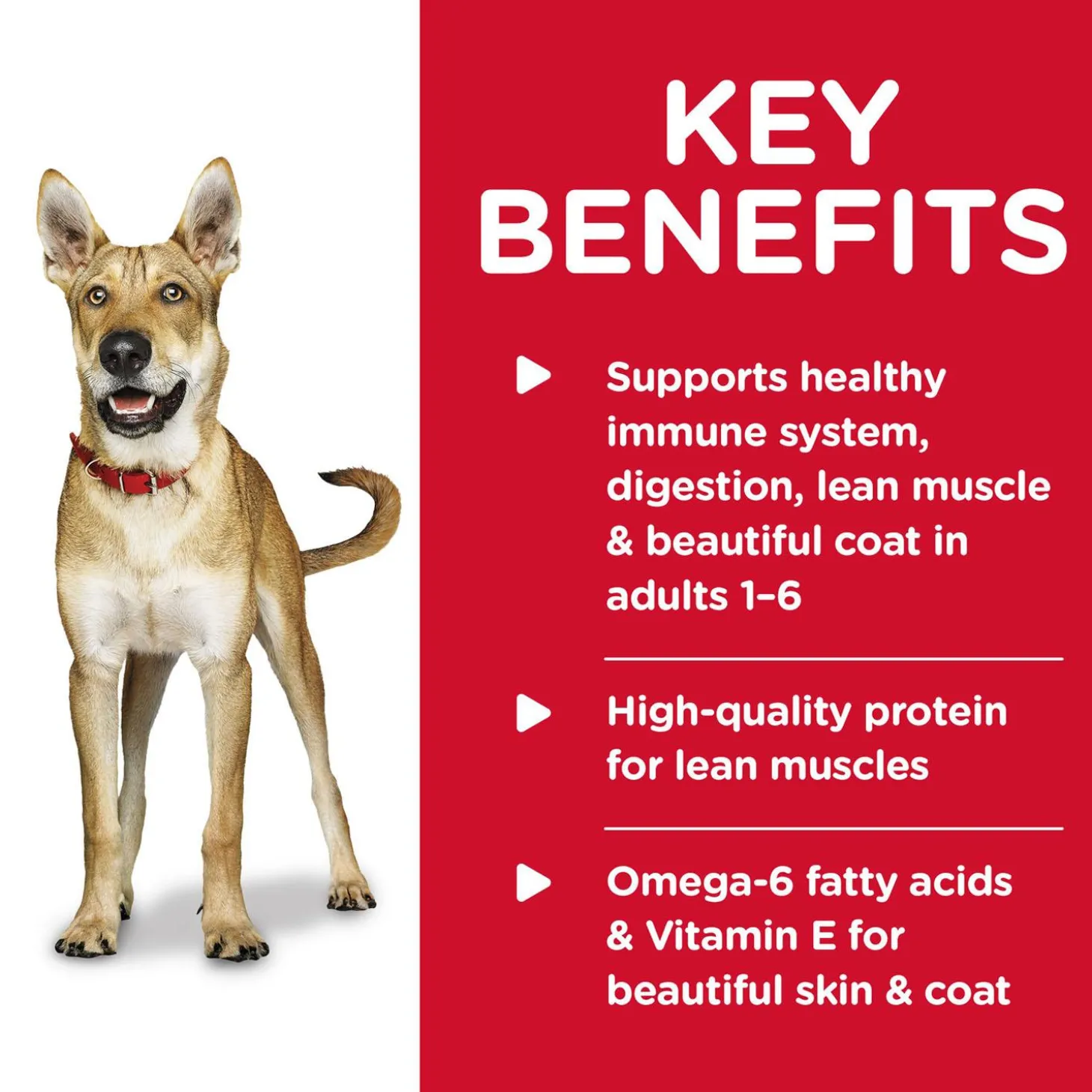 - High-quality protein to help your grown dog build and maintain lean muscle