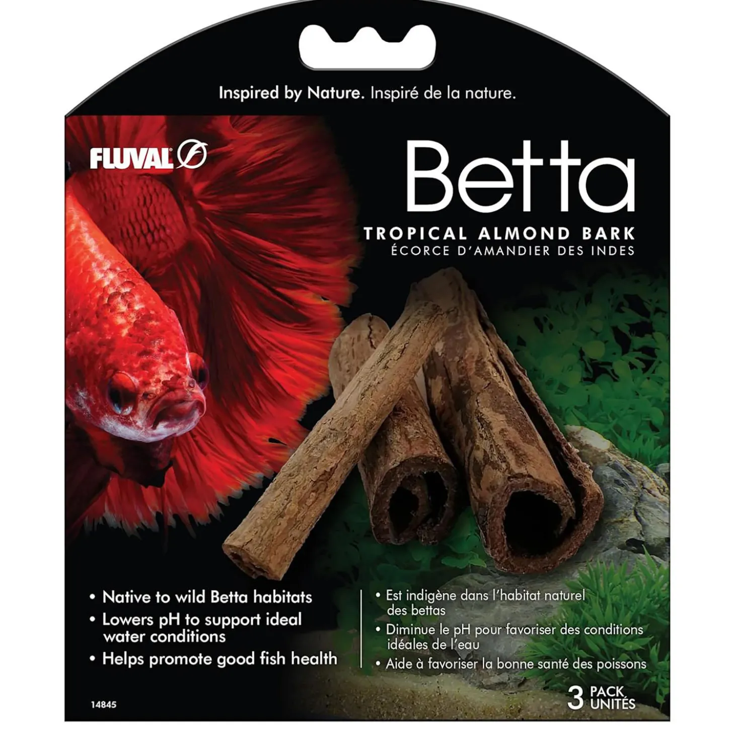Fluval Betta Tropical Almond Bark will bring a natural look to your aquarium while helping to establish ideal water conditions. It releases tannins and other beneficial compounds that will help boost the immune system of your fish, lower their stress and tint the water a beautiful shade of amber. (Pack of 3)