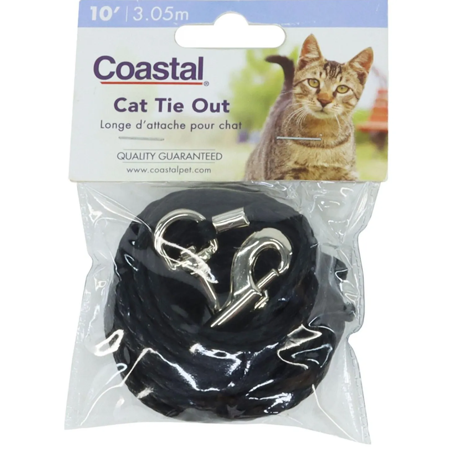 Coastal Pet Products Black 10ft Cat Tie Out lets your cat enjoy the outdoors safely providing peace of mind. This lightweight 3m (10ft) tie out features nickel-plated swivel snaps, made with weather resistant materials, and is tangle resistant.