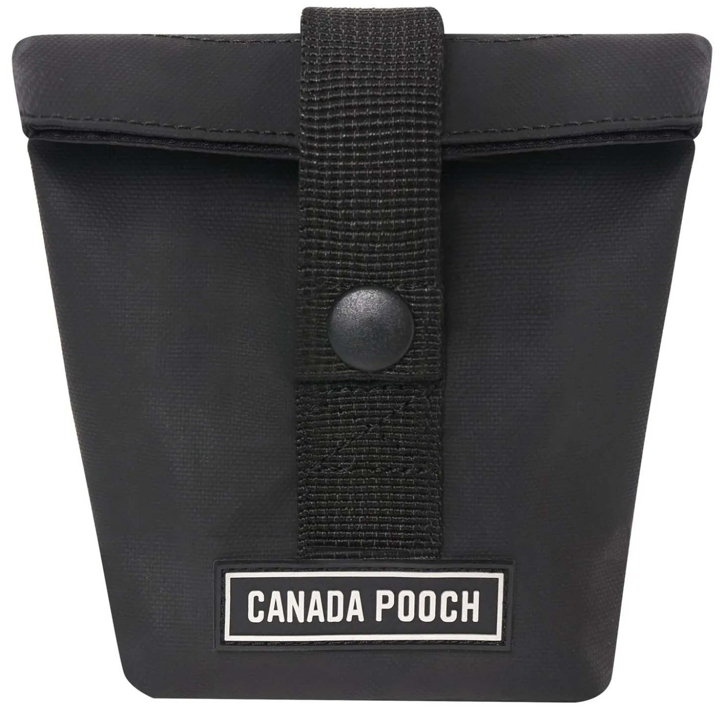 Canada Pooch Black Treat Bag clips onto webbing loop on a handsfree dog walking Belt and is made so you have easy access to treats on your walk.