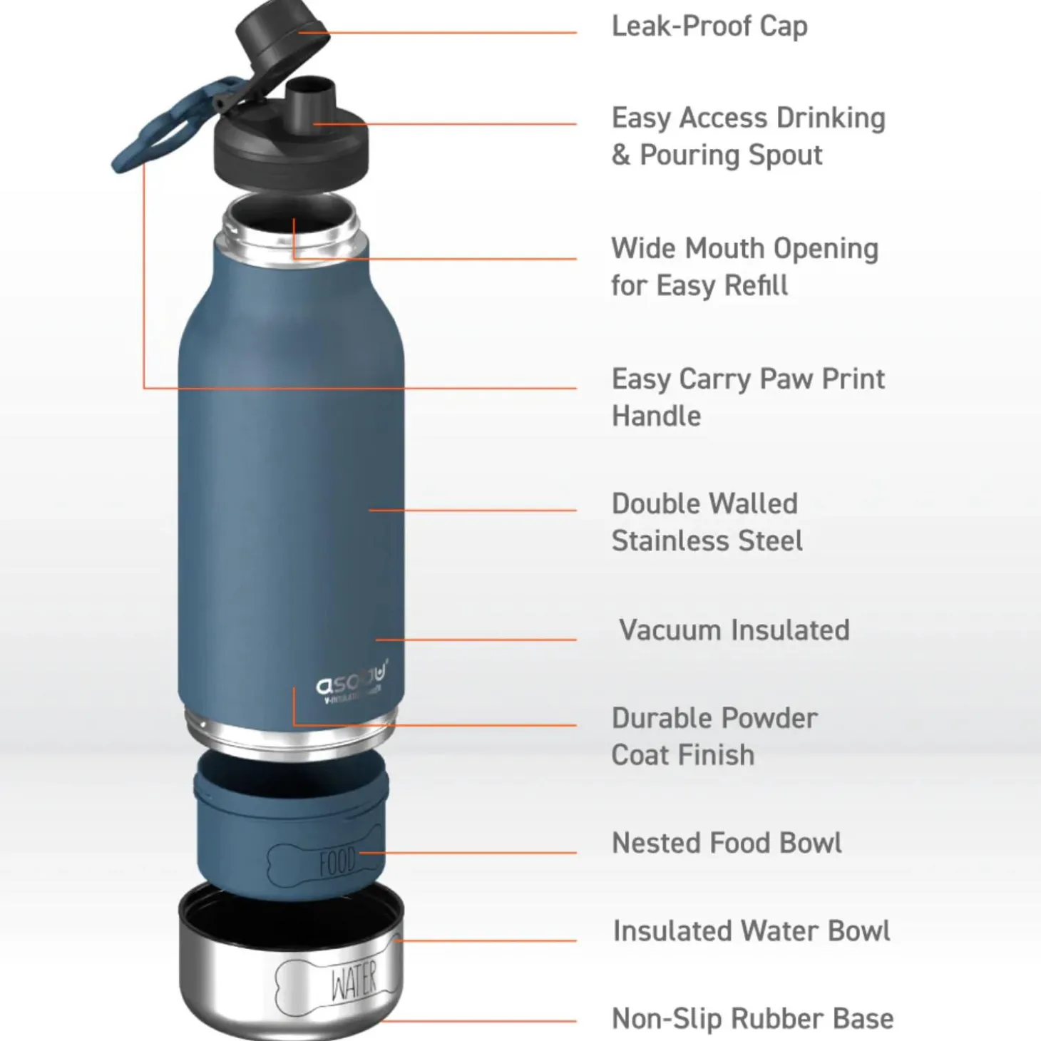 Asobu Blue Buddy Bottle makes it easy to share with your pup! A stainless steel, insulated bottle keeps water cold for hours, and two detachable bowls make it easy to share water – and a snack – with your buddy! The leak-proof cap ensures your water won’t spill, no matter where your adventures take you, and the easy-to-carry pawprint handle makes it the perfect bottle for your next hike. The Buddy Bottle makes the perfect gift for the dog parent in your life!