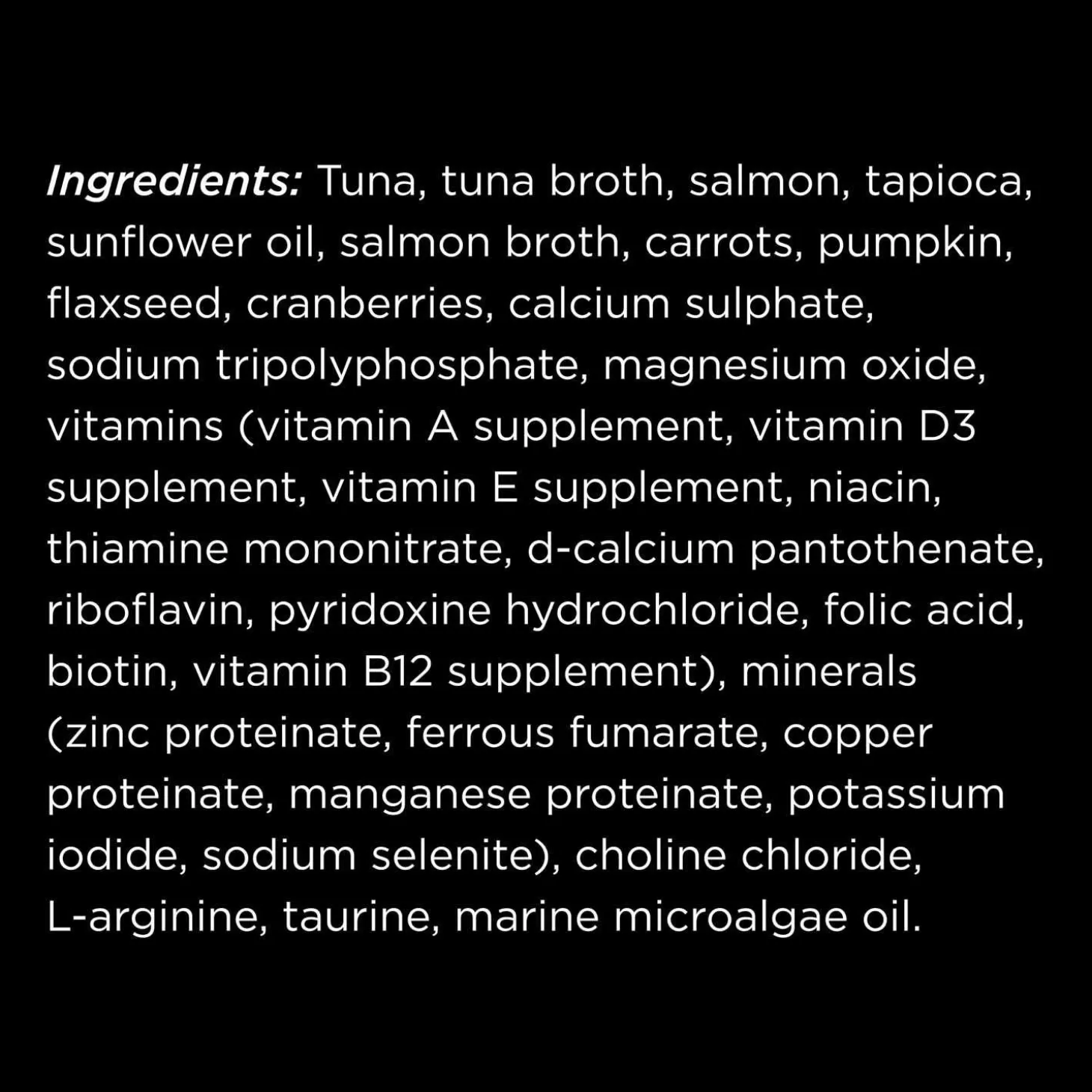 - PREMIUM INGREDIENTS: premium-quality tuna and salmon provide amino acids to support and maintain strong, lean muscles. Packed with Omega 3 fatty acids from marine microalgae oil