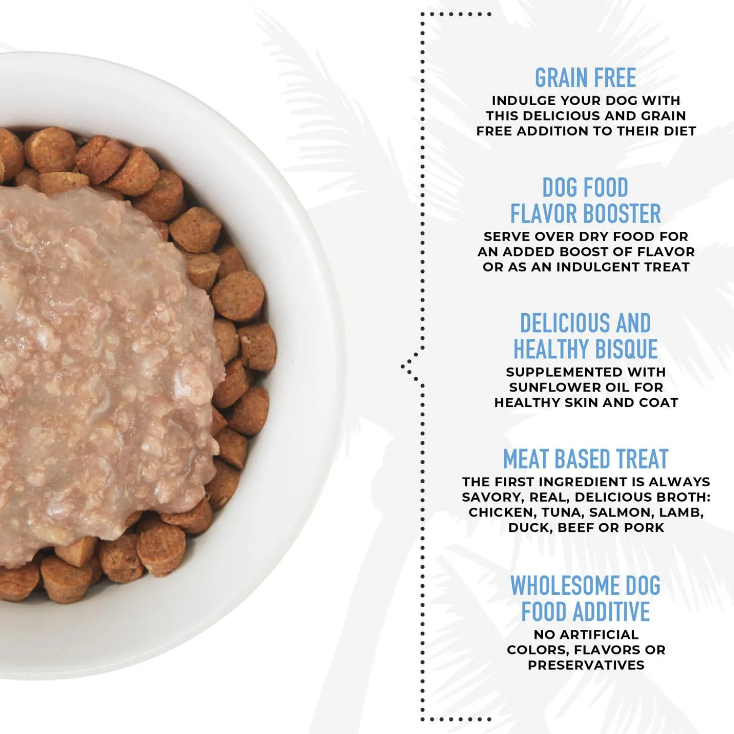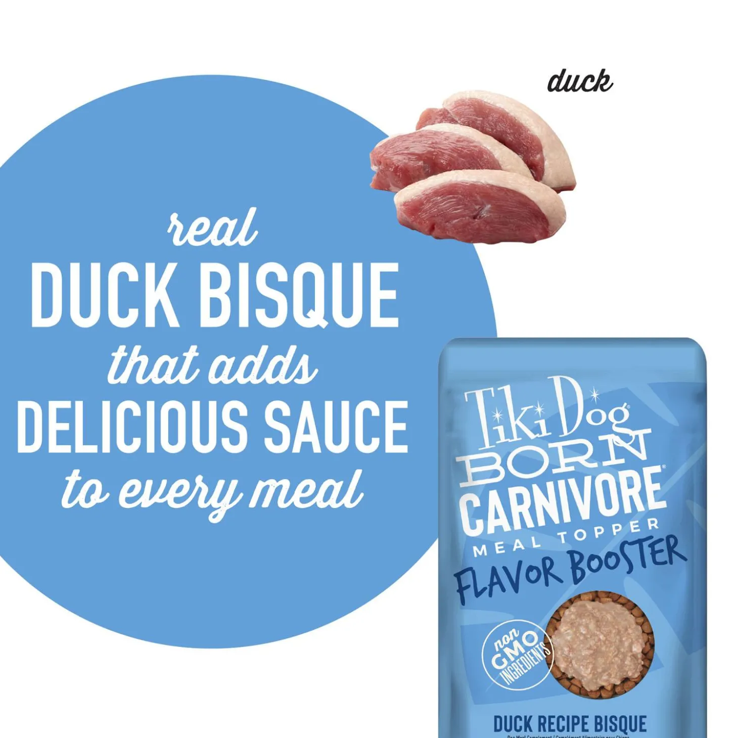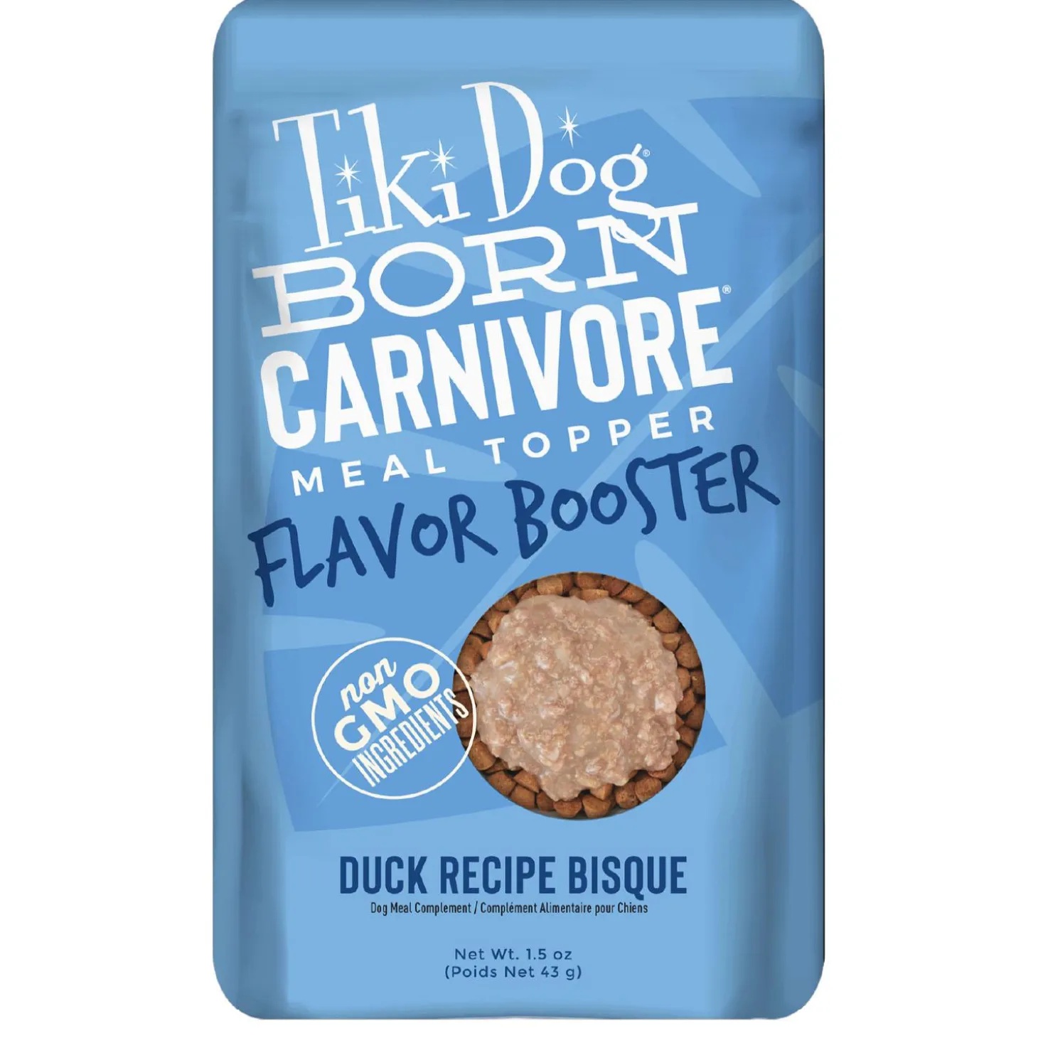 - Tiki Dog Born Carnivore Flavour Boosters offers a decadent gravy with small chunks of protein for a luxurious meal topper or treat for supplemental nutrition for your dog