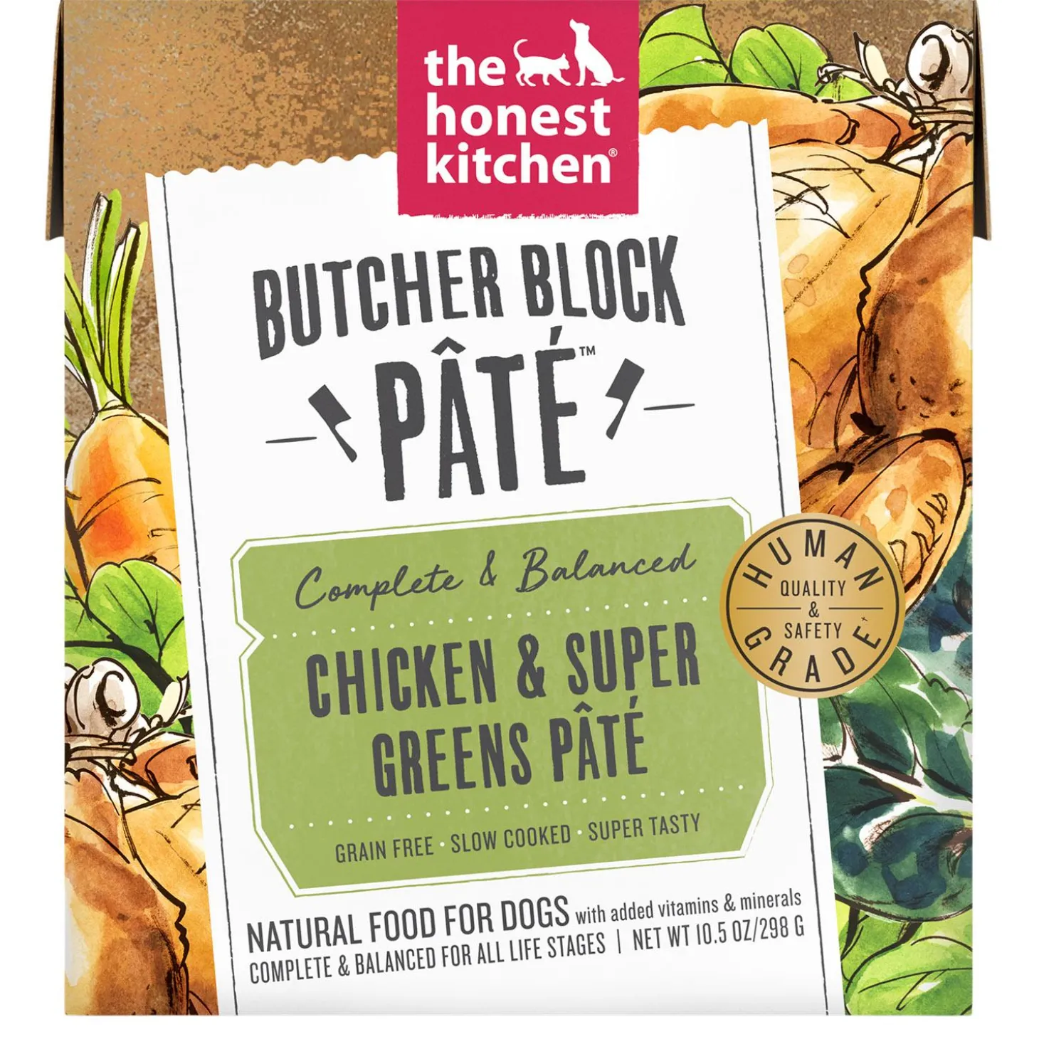 The Honest Kitchen Butcher Block Chicken & Super Greens Pate Dog Food is sure to be a hit with your pup. The Honest Kitchen believes that health starts with human grade, whole foods. That’s why they teamed up with a chef to make this smooth, hearty Butcher Block Pate with cage free chicken and super greens like spinach and kale. This hearty wet food can be served as a complete meal or healthy mix-in that helps you boost your pup’s health and happiness from the inside out.