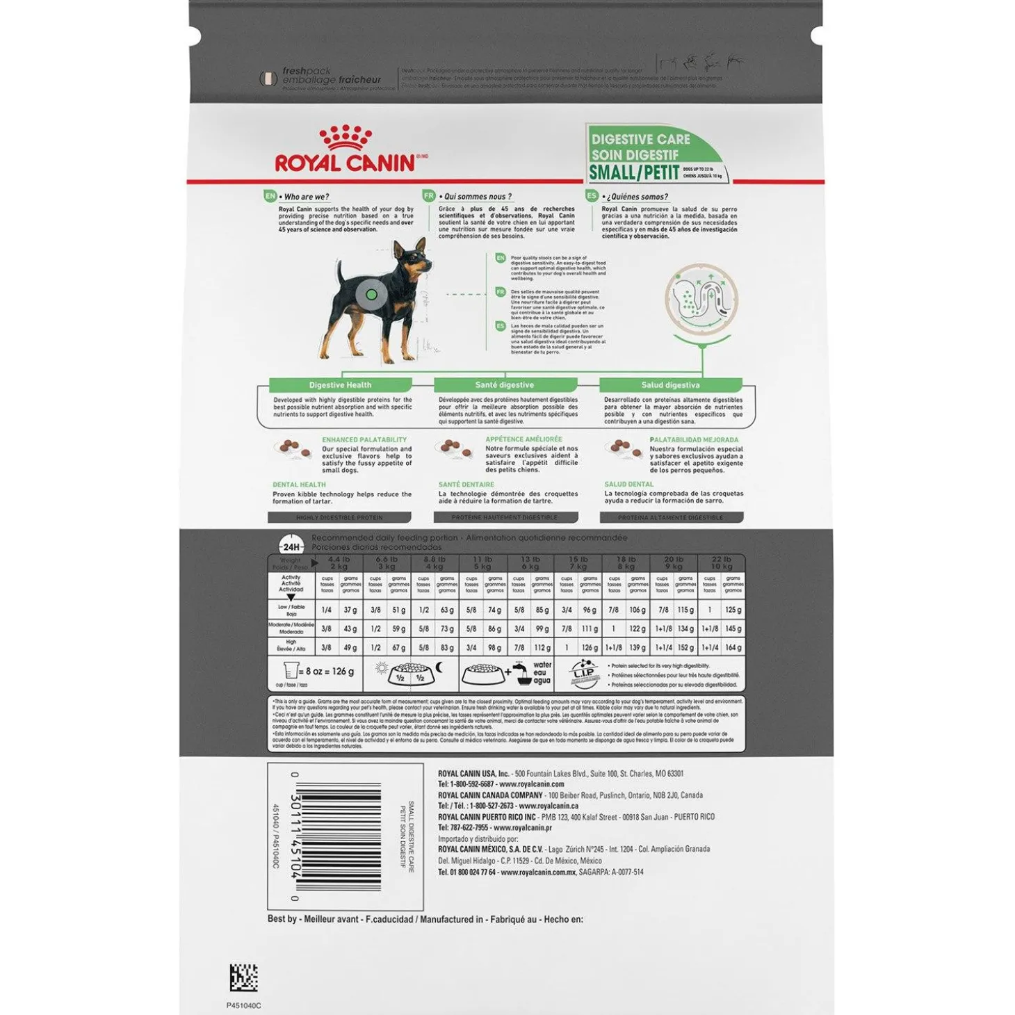 Royal Canin Canine Care Nutrition Digestive Care Small Dog Food is designed for adult dogs from 10 months to 8 years that have digestive sensitivities and finicky appetites.