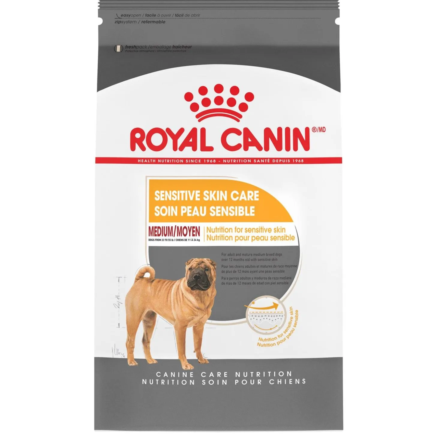 Royal Canin Canine Care Nutrition Sensitive Skin Care Medium Dog Food is formulated to meet the unique nutritional needs of medium dogs over 12 months old, between 10.4-24.9kg (23-55lb) prone to skin irritations and itching.