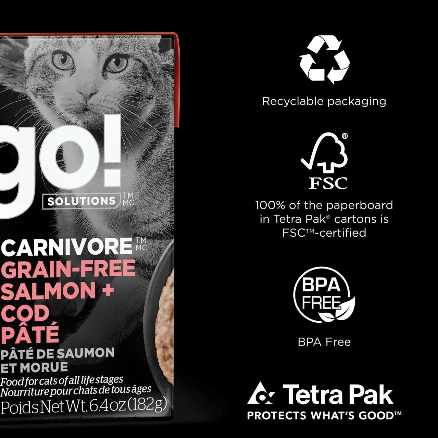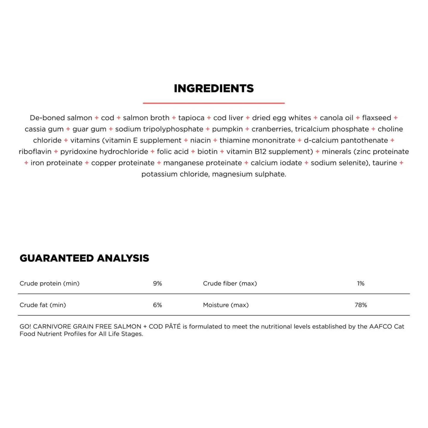 Go! Solutions Carnivore Grain Free Salmon + Cod Pate Recipe Cat Food is a protein-packed meal bursting with real meat to support their strong and lean muscles. Formulated in Ontario, Canada, this tasty wet cat food not only satisfies their taste buds but also provides complete and balanced nutrition for cats of all ages.