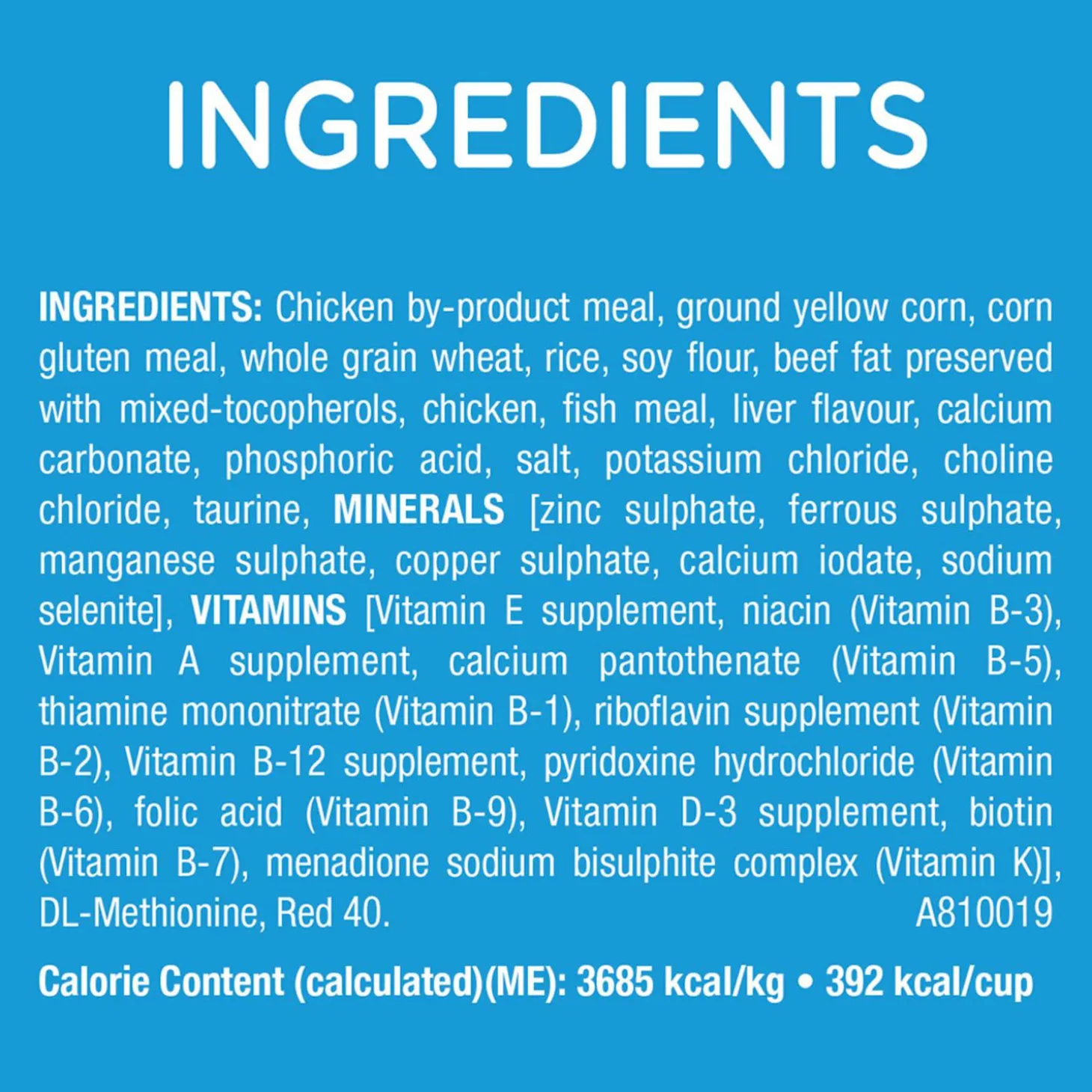 Purina Cat Chow Complete Real Chicken Cat Food can help cats live their best life, by not only delivering the right balance of protein, fats and carbohydrates, but also offering a great taste! This Complete formula is made with a precise blend of wholesome, mouthwatering ingredients including real, nutrient-rich chicken. This food is crafted from responsibly sourced ingredients using expertly prepared recipes. You can have peace of mind knowing this food is prepared in Purina-owned facilities by nutrition experts who are passionate about helping your cat thrive. Made with Real, Savoury, Nutrient-Rich Chicken.