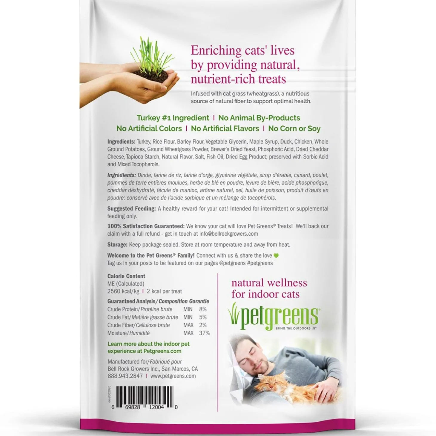 Pet Greens Cat Craves Turkey & Duck Recipe Cat Treats are full of flavour, naturally pure, nutritious greens! Every mouth-watering morsel contains real meat as the first ingredient, plus added fish oil provides nourishing Omega-3 fatty acids for skin and coat health. Tasty, bite-sized pieces contain healthy wheatgrass, a nutrient-rich source of essential vitamins, minerals, antioxidants and fibre for improved digestion. Satisfy your kitty’s craving for greens!