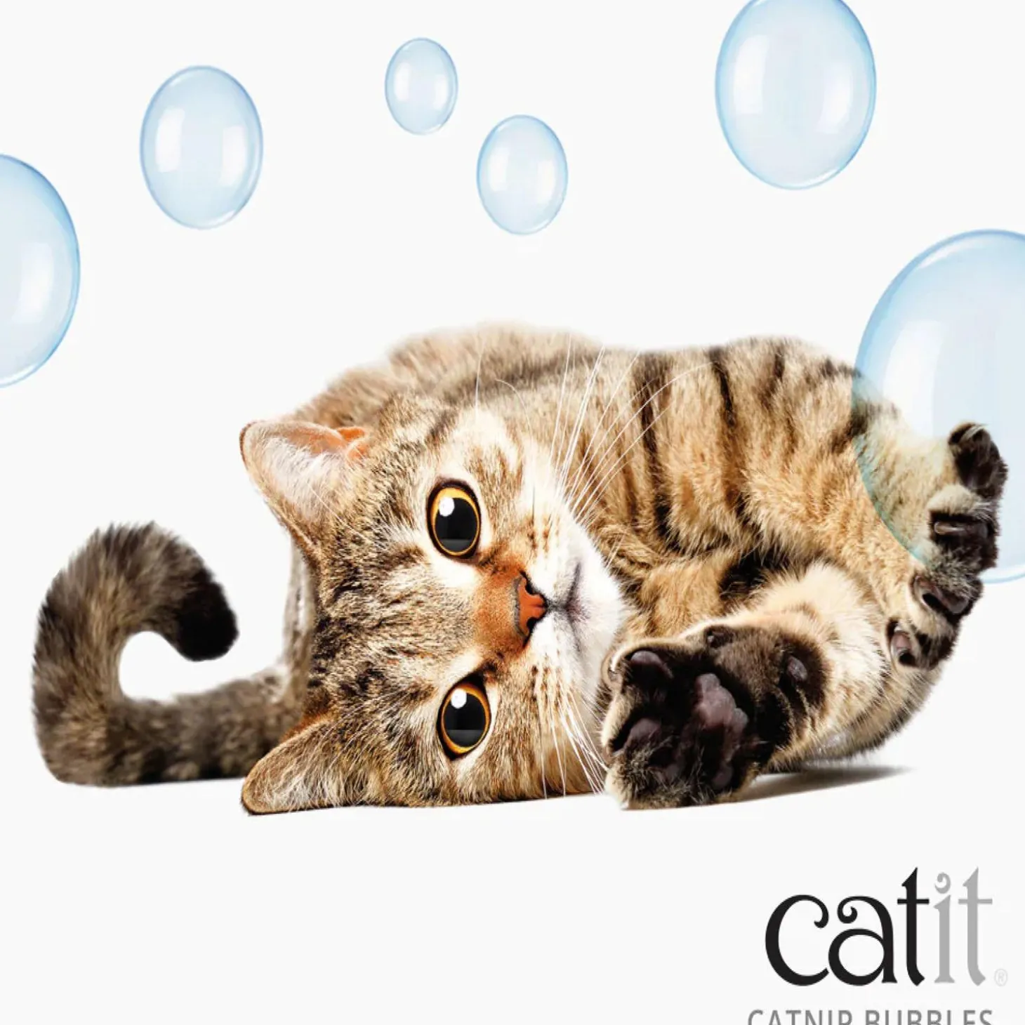 Catit Catnip Bubbles will boost your cat’s playtime with this premium range of Canadian catnip. It’s hard to tell who’s having more fun, the person blowing the bubbles or the cat popping them. Simply dip the wand into the bottle and stir gently. Next, take the wand back out and blow bubbles in your cat’s general direction.