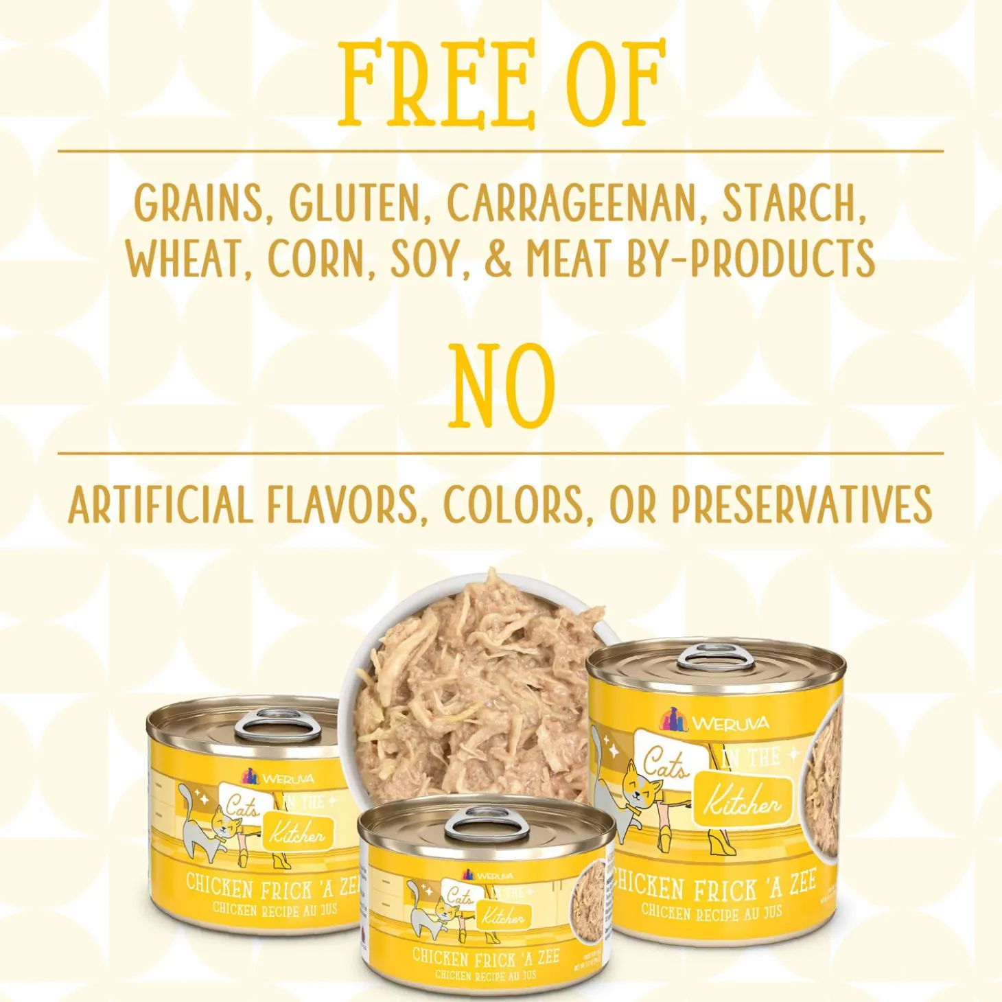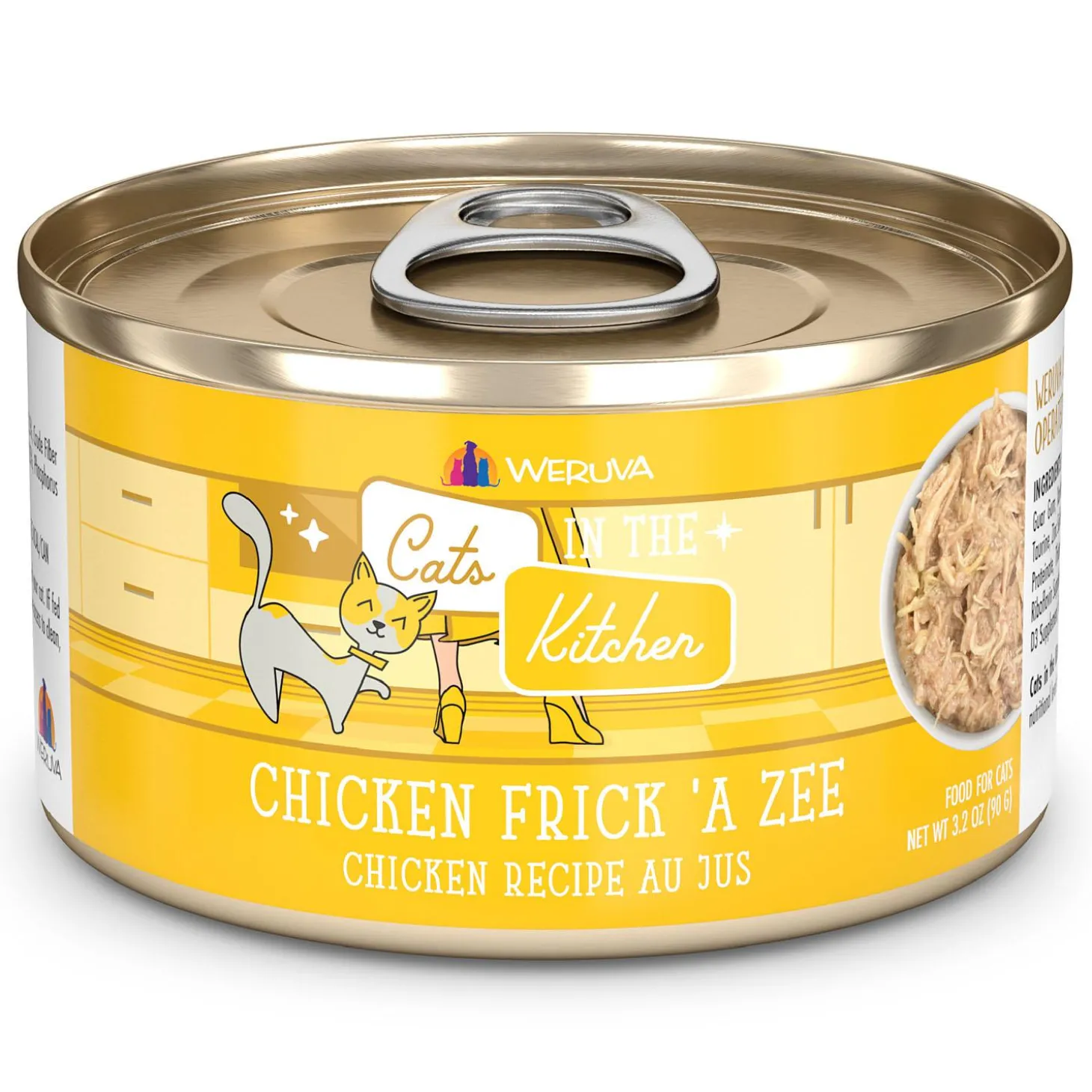 Weruva Cats in the Kitchen Chicken Frick ‘A Zee Chicken Recipe Adult Cat Food serves up a meal straight from your kitchen that’s crafted with everything your cat craves. Featuring boneless, cage-free chicken in a flavourful au jus, it’s high in protein, low in carbs, starch-free, and crafted to fuel your kitchen carnivore’s natural cravings.