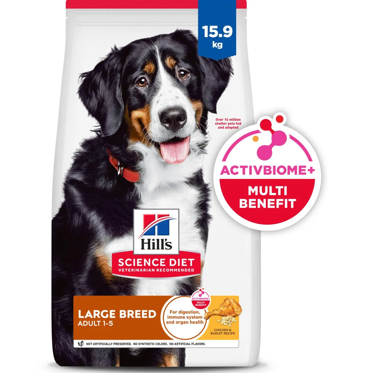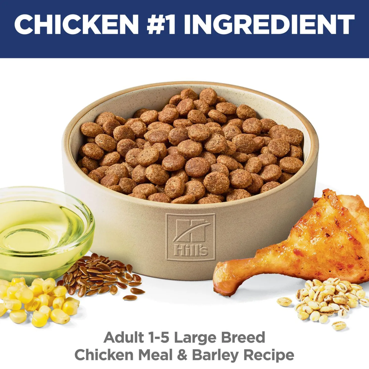 Hill’s Science Diet Chicken & Barley Recipe Large Breed Adult Dog Food is specially formulated to fuel the energy needs of large breed dogs during the prime of their life. Made with high-quality, easy-to digest-ingredients, this food made for fully grown large dogs supports the building of lean muscle with high-quality protein, as well as glucosamine and chondroitin for healthy joints & mobility. A balanced blend of omega-6s and vitamin E nourishes your dog’s skin for a healthy, shiny coat.