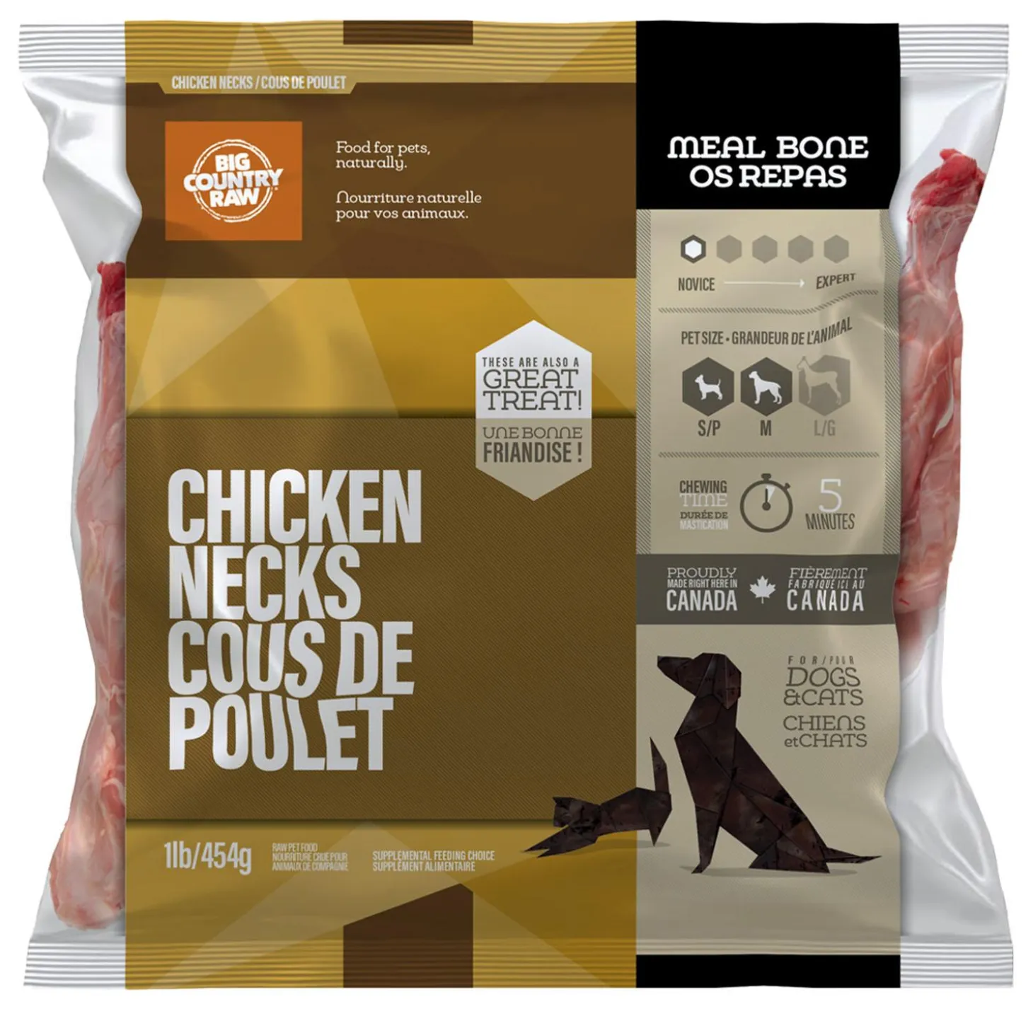 Chicken necks are a lean meaty bone that can be offered as a treat or with a meal. An excellent entry level chewing bone for cats, as well as puppies and small breed dogs. Big Country Raw Chicken necks offer a nice balance between chew and crunch, and support healthy teeth and gums.