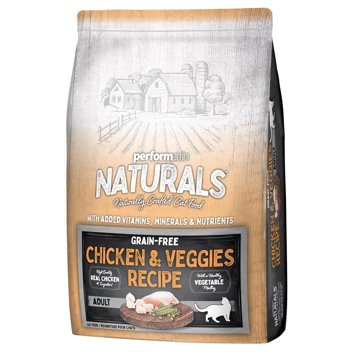 Performatrin NATURALS Chicken & Veggies Grain-Free Recipe Adult Cat Food is a delicious recipe where high-quality protein is always the first ingredient. Naturally Crafted, from our family to yours because mealtime is family time, and our pets are family.