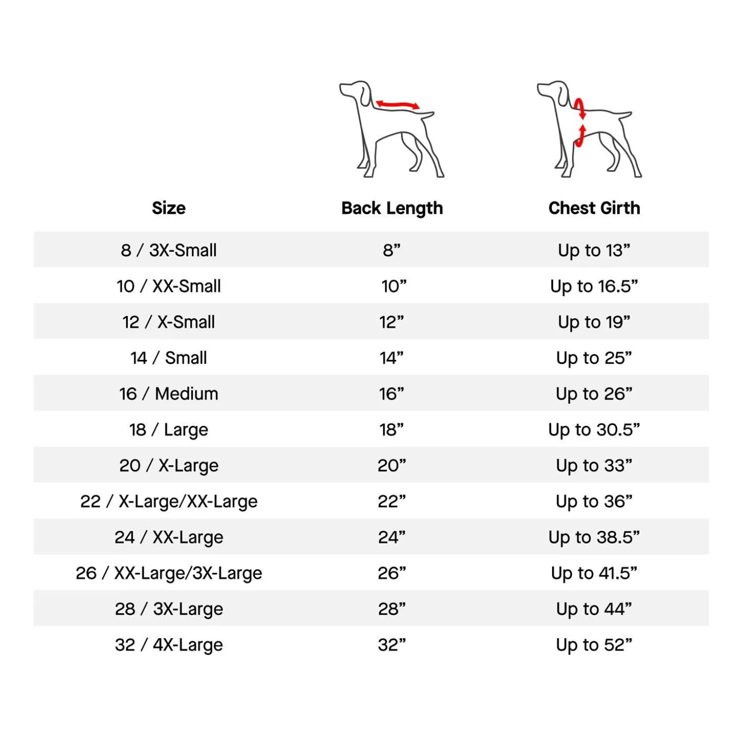 | Size | Back Length | Chest Girth |