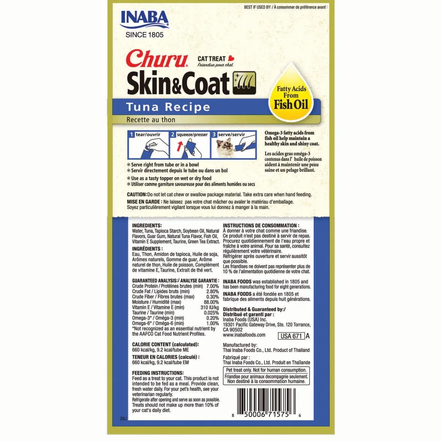 - FUN AND FUNCTIONAL: Like the original Inaba Churu Cat Treats, these tubes are a low-calorie treat that helps with hydration. And are also packed them with Omega-3 fatty acids from fish oil to help maintain healthy skin and a shiny coat