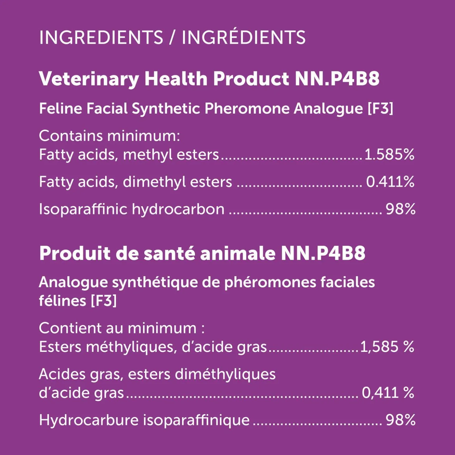 Use: Simply insert the refill into the diffuser and plug it directly into the outlet. Each diffuser will cover 700 square feet. For best results, keep the diffuser plugged in 24/7 and replace with a FELIWAY Classic Diffuser refill every 30 days. The diffuser must be replaced every 6 months. Use only in properly functioning 120-volt electrical outlets. Do not use with extension cords, adapters, or converters. Best results are typically seen after 3 to 4 weeks of continuous use. Use only FELIWAY Refills with FELIWAY Diffusers.