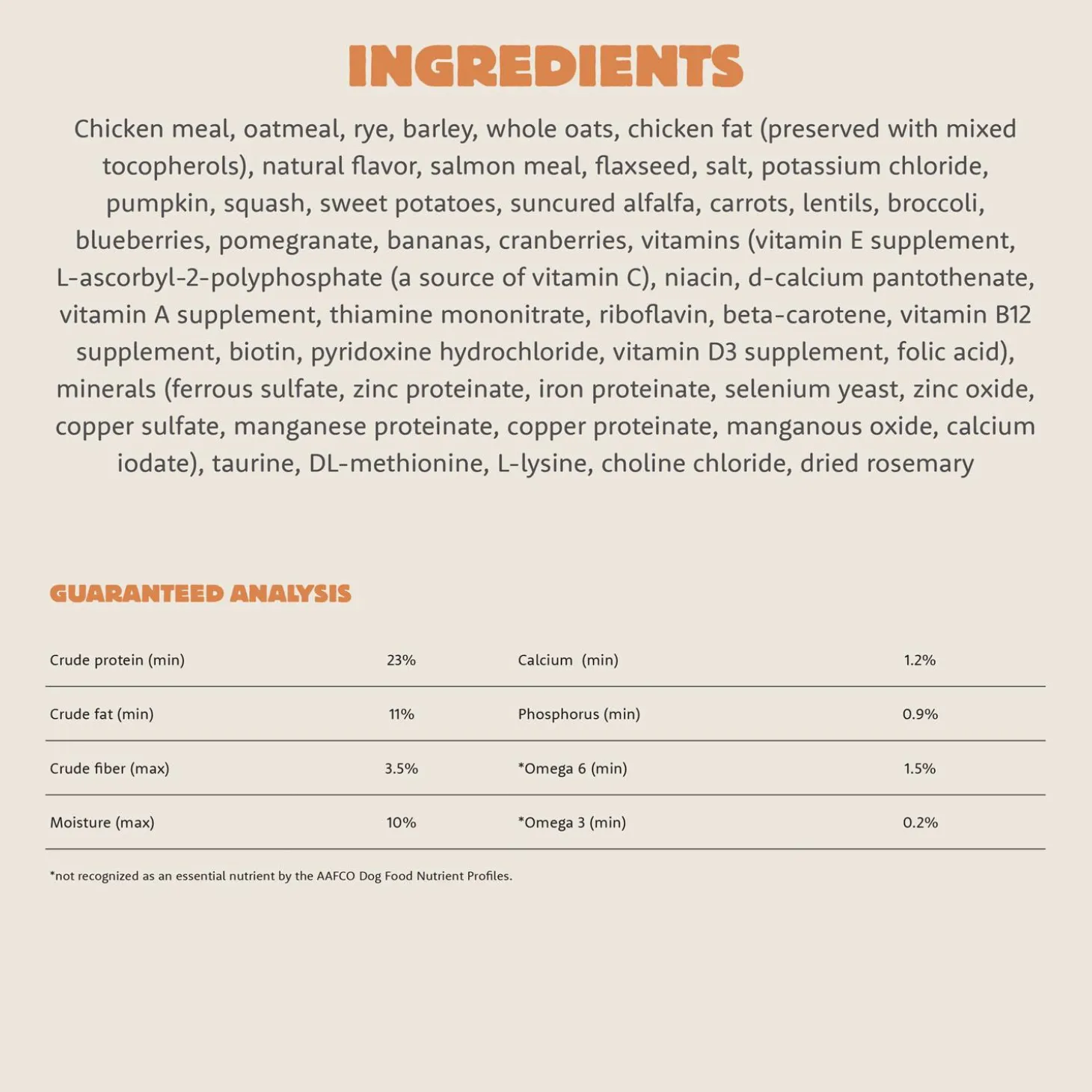 - Complete & balanced recipes with no corn, wheat, soy, white potato or by-product meals
