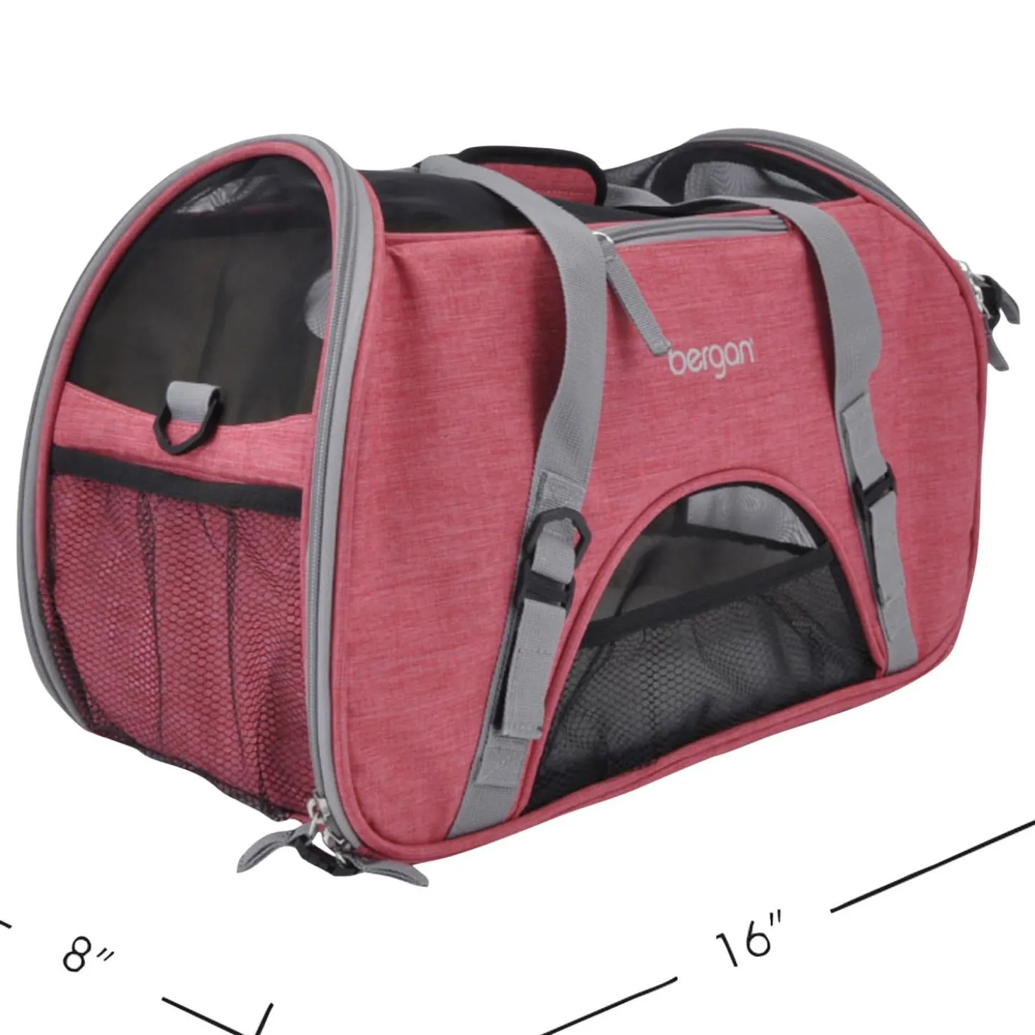Help your pet travel in comfort with the Bergan Comfort Carrier. The carrier’s practical design takes the stress out of traveling. Mesh panels allow for maximum breathability, and the adjustable strap makes it easy to carry on-the-go. Plus, the carrier comes with a washable fleece travel bed for cushioned comfort. The Comfort Carrier has a safety-tested Seat-Belt Loop to secure the carrier in the car, and its design is also airline compatible. Take this carrier with you in the car or on the plane to make pet travel stress-free!
