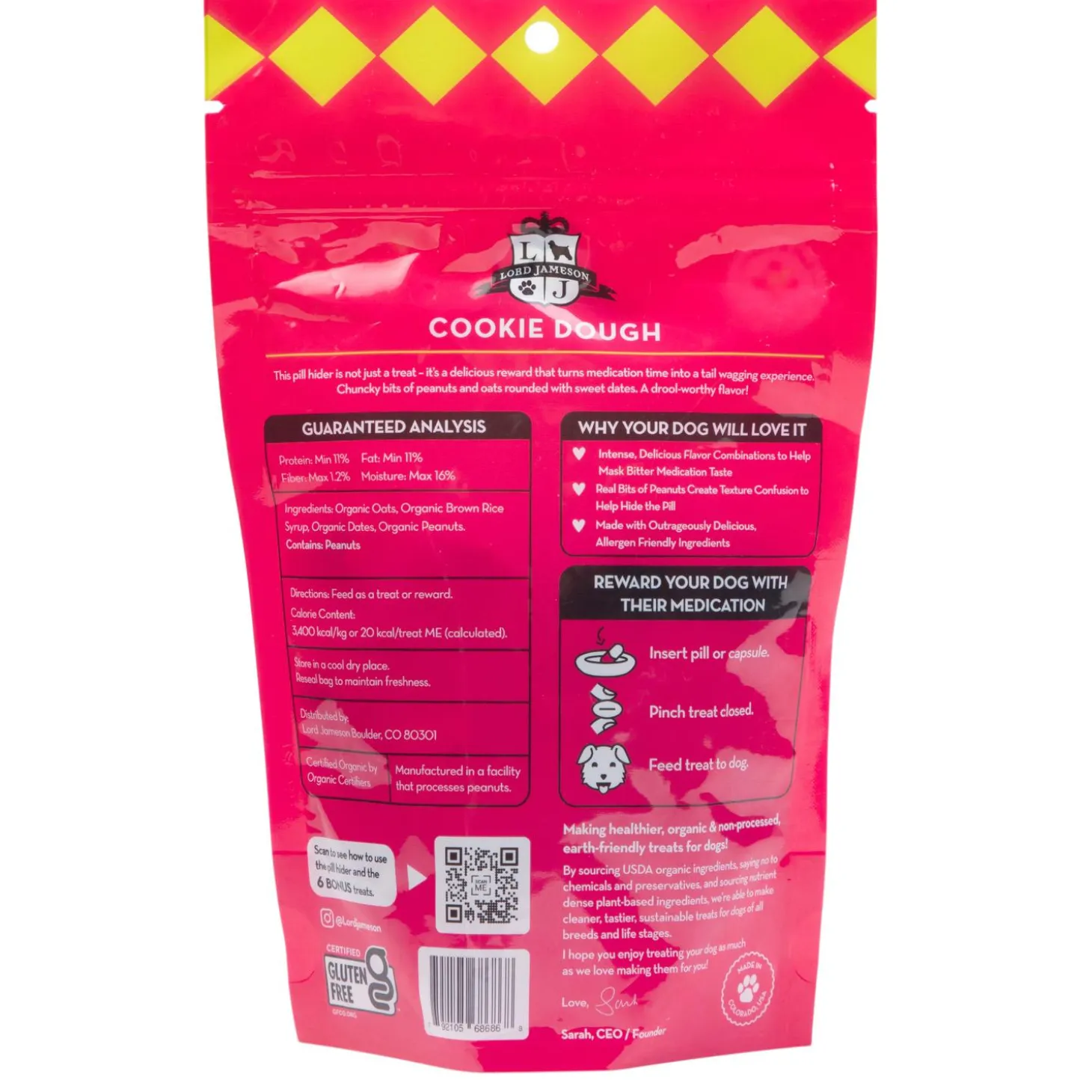 Lord Jameson Cookie Dough Pill Hider Dog Treats will help “make medicine taste better”. Finally, a clean way to make administering your dog’s medications an easy and tail-wagging experience! Just stick the pill or capsule inside one of the pill hider treats, pinch the treat closed to form a soft moldable pill hider, and feed to your dog! Watch your dog’s tail wag as they beg for more!