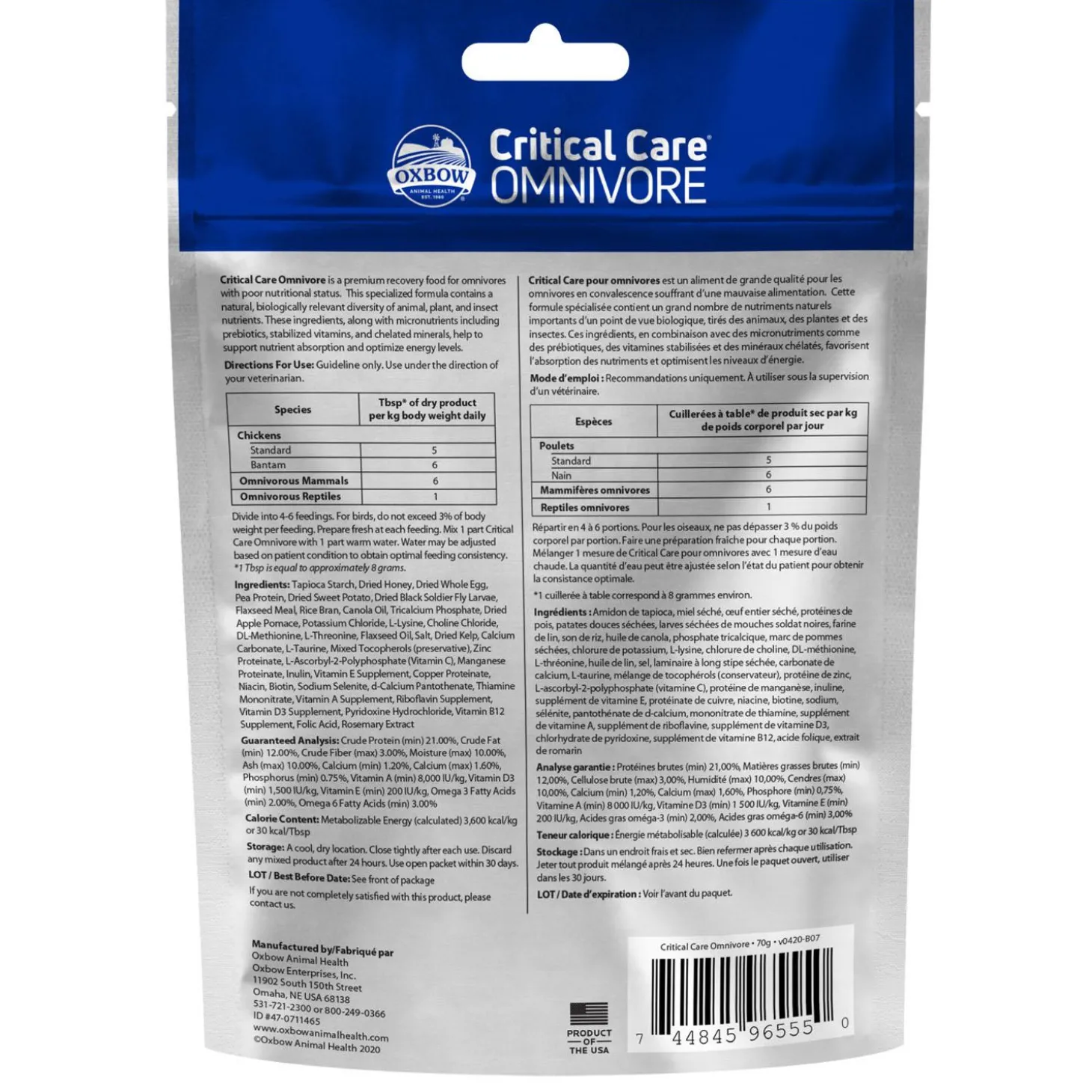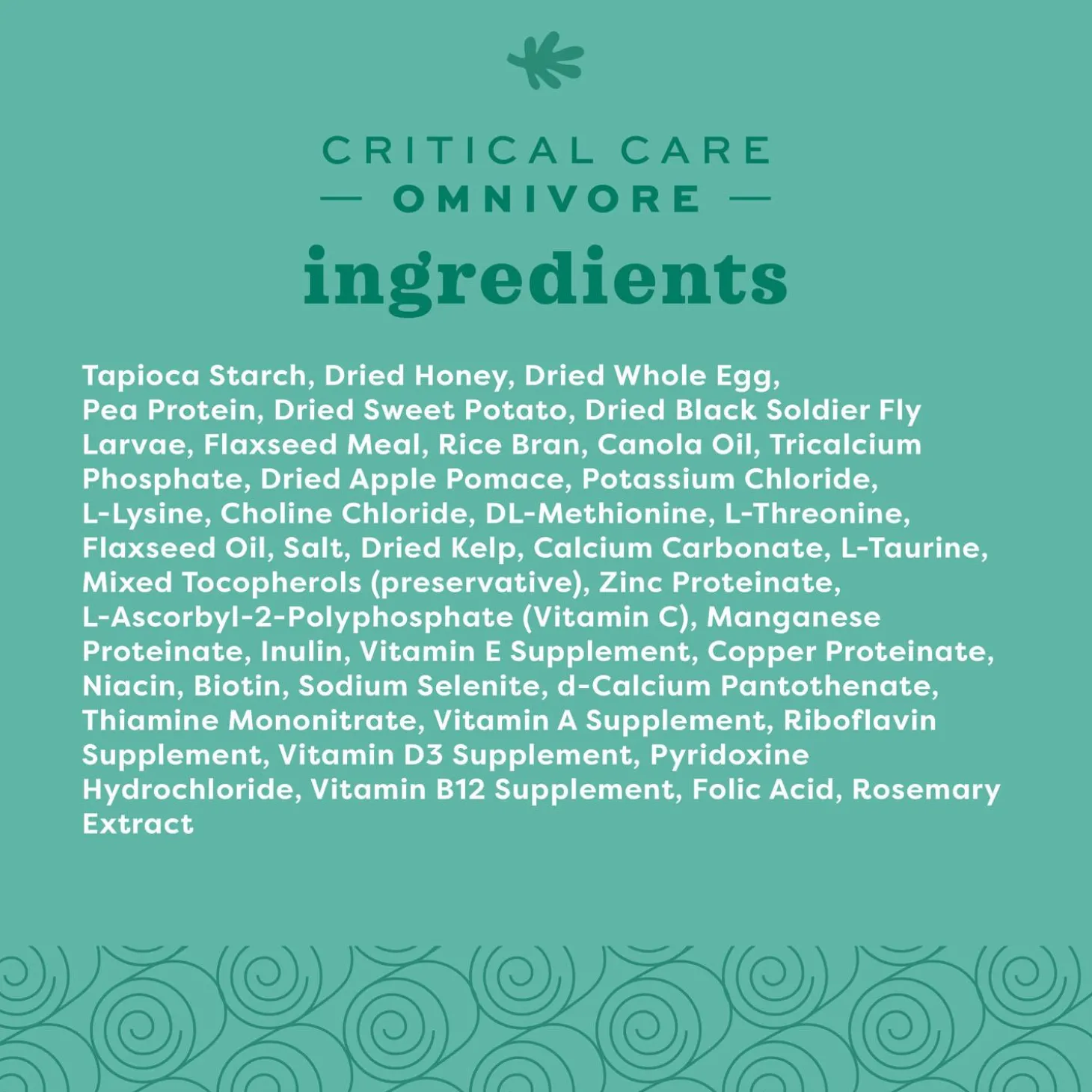 Oxbow Critical Care Omnivore Feeding Formula is a premium recovery food for omnivores with poor nutritional status. This specialized formula contains a natural, biologically relevant diversity of animal, plant, and insect nutrients. These ingredients, along with micronutrients including prebiotics, stabilized vitamins, and chelated minerals, help to support nutrient absorption and optimize energy levels.