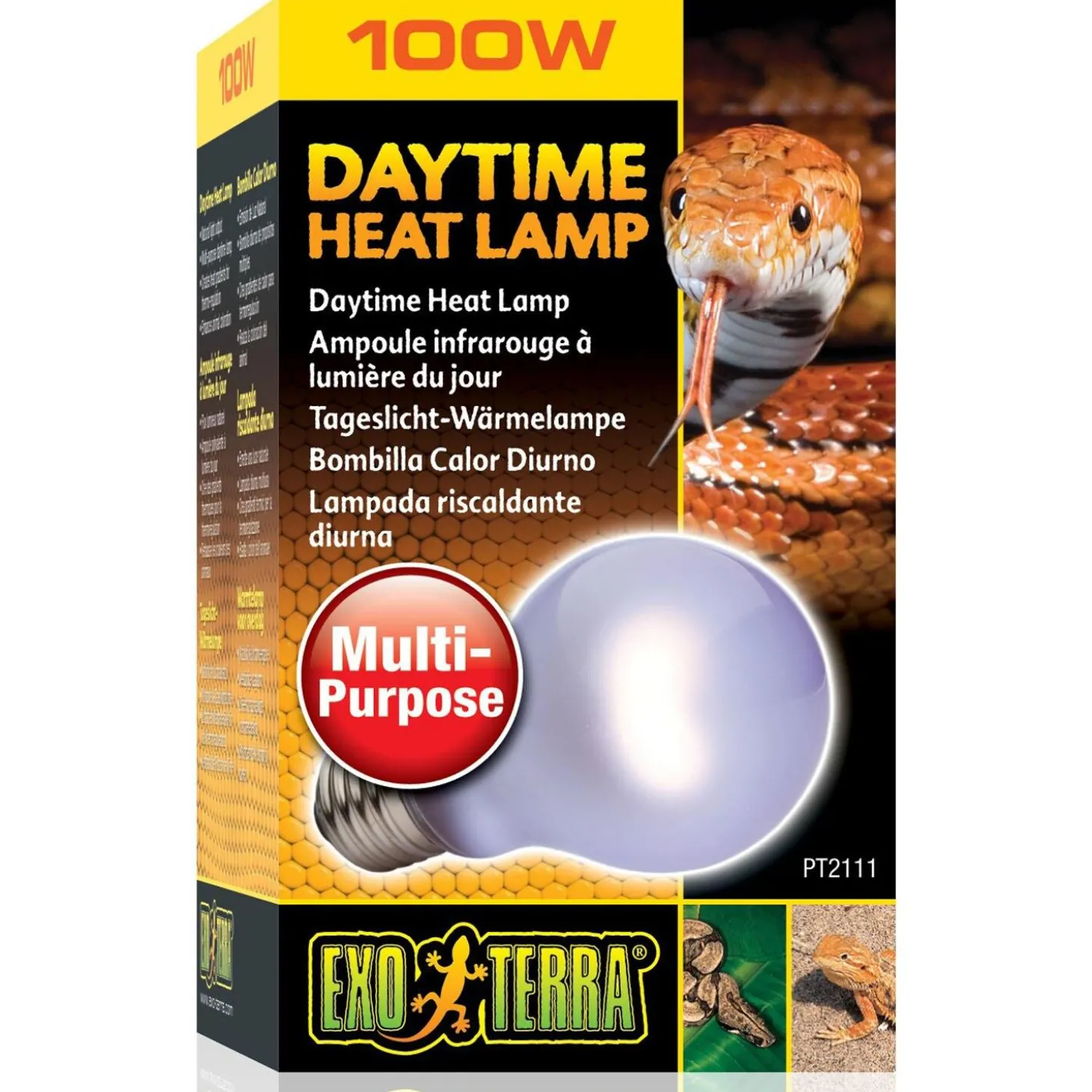 Exo Terra Daytime A21 Heat Lamp is a broad-spectrum daylight lamp with a Neodymium sleeve. The spectrum is ideal for plant’s photosynthesis and the UVA (ultraviolet A) light contributes to reptiles’ physiological well-being. Another important factor is the heat emitted by this bulb is to increase the over all ambient temperature in the terrarium.