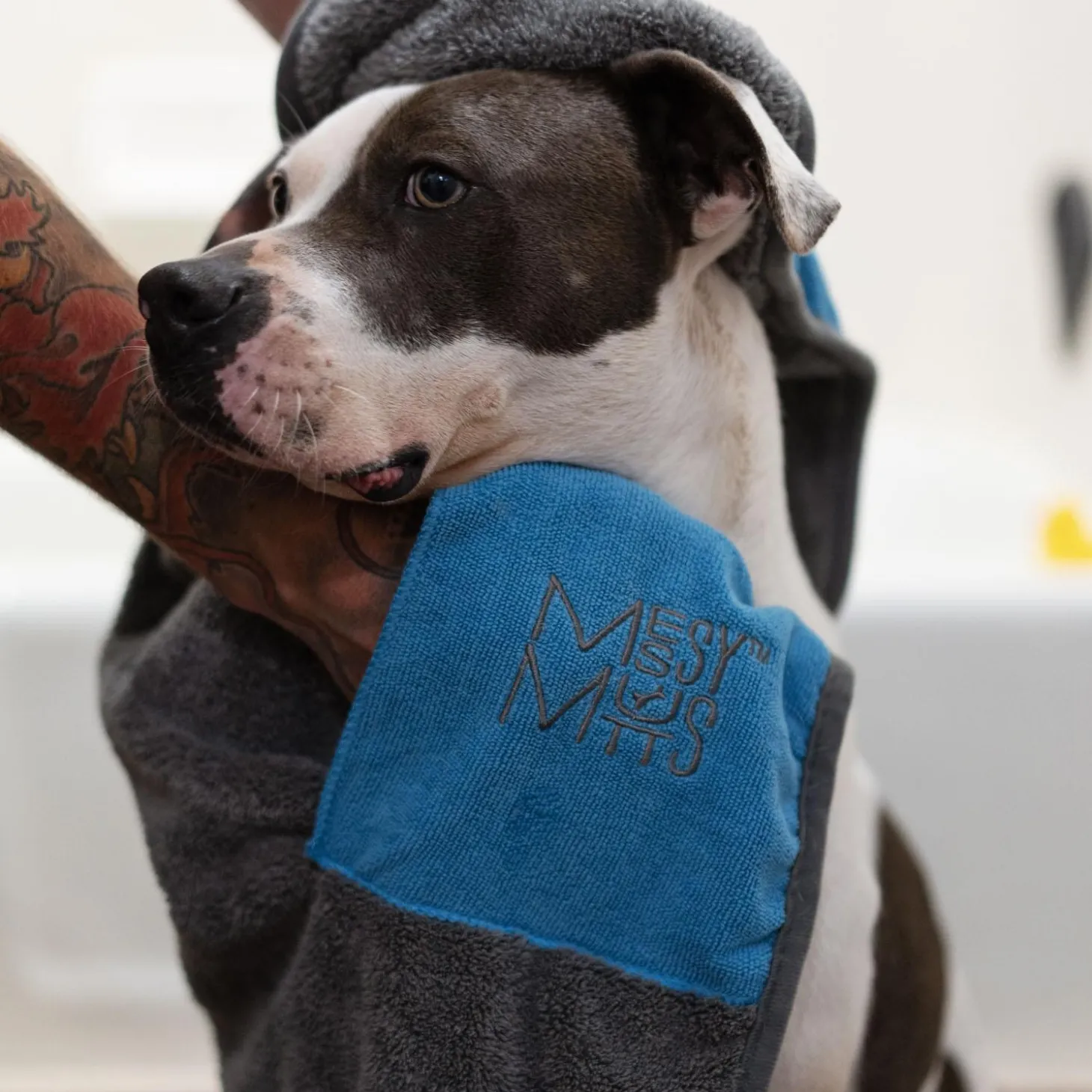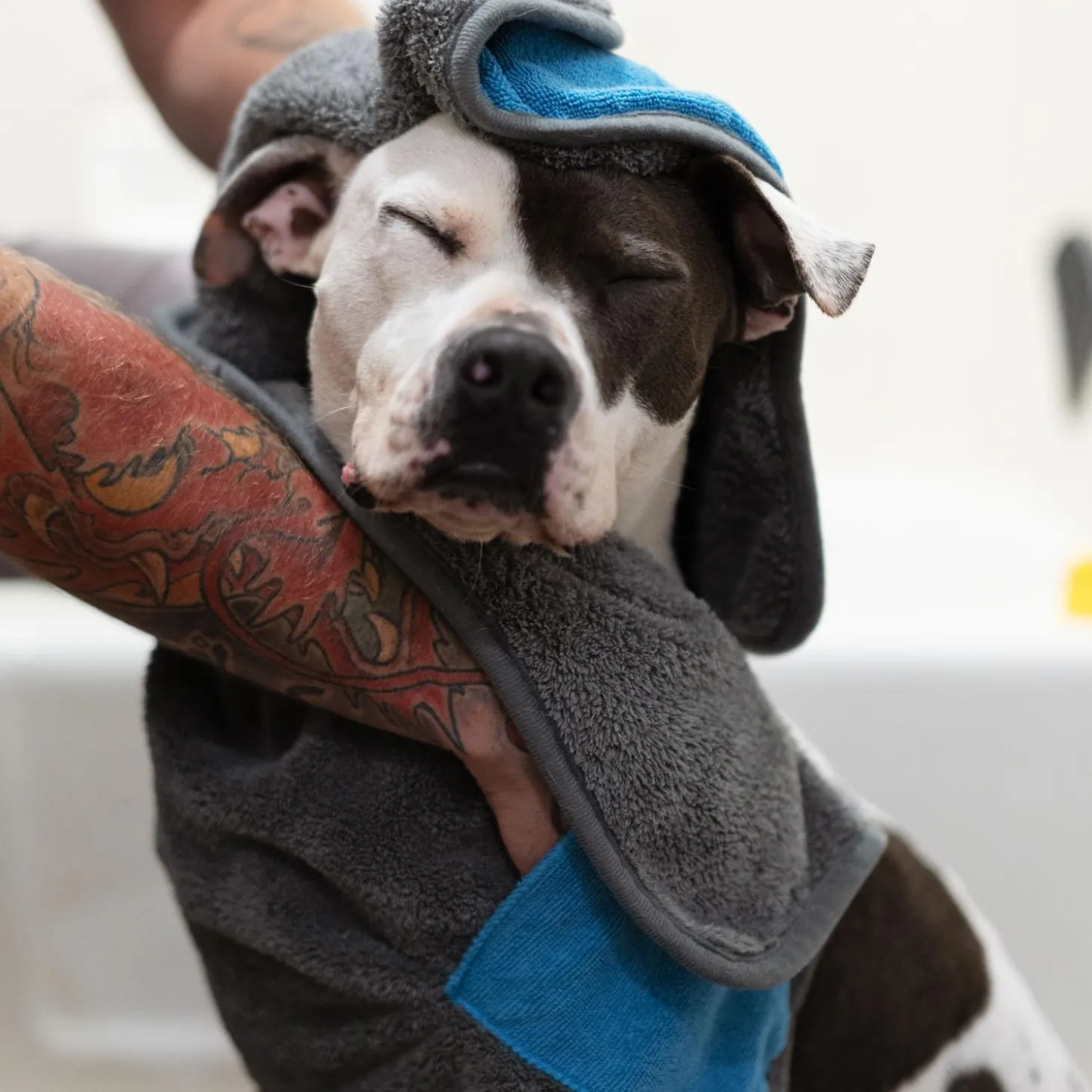 - Slide your hands into the pockets located on the back side of the towel to make drying your dog a little more convenient.