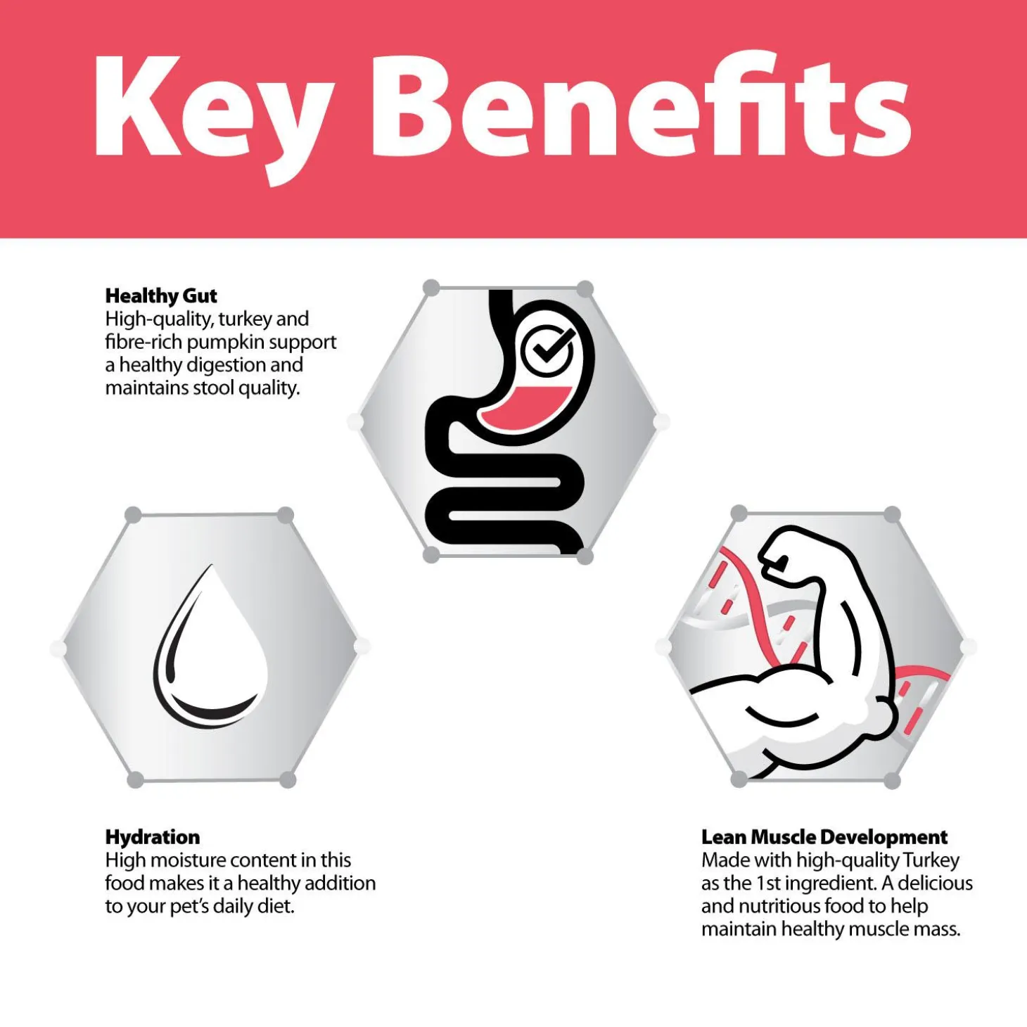 - Easy-to-digest Turkey and fiber-rich Pumpkin support a healthy digestion