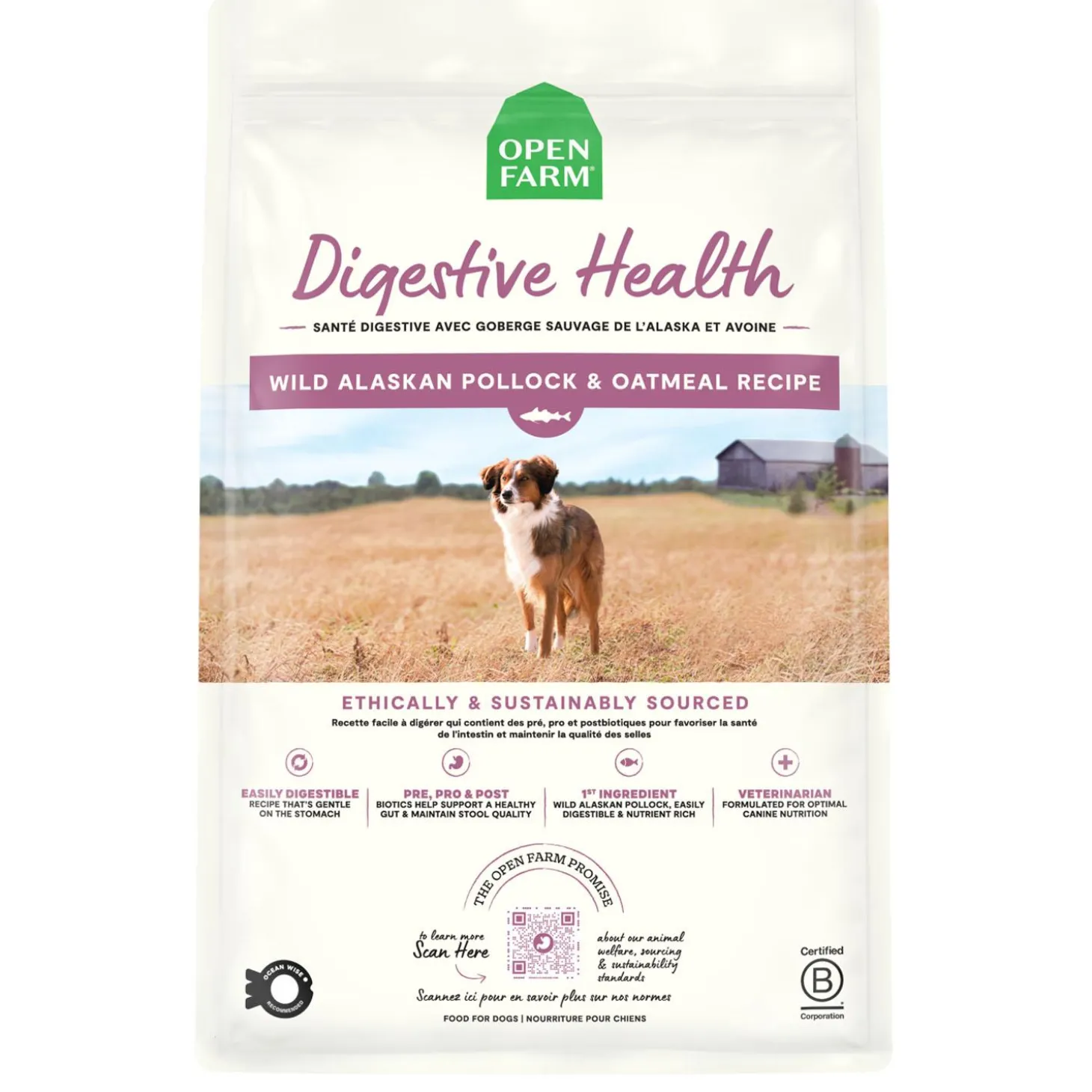 Open Farm Digestive Health Wild Alaskan Pollock & Oatmeal Recipe Adult Dog Food provides an easily digestible recipe that is gentle on the stomach. This veterinarian formulated recipe is made with nutrient rich and easily digestible Ocean Wise recommended wild Alaskan pollock as the 1st ingredient, combined with stomach soothing fibers like oatmeal and pumpkin. This recipe is packed with prebiotics, probiotics, and postbiotics to support a healthy gut and maintain stool quality. Open Farm’s functional diets stay true to the mission with high-quality, functioning ingredients that target specific nutritional needs and deliver the best solutions for pets.