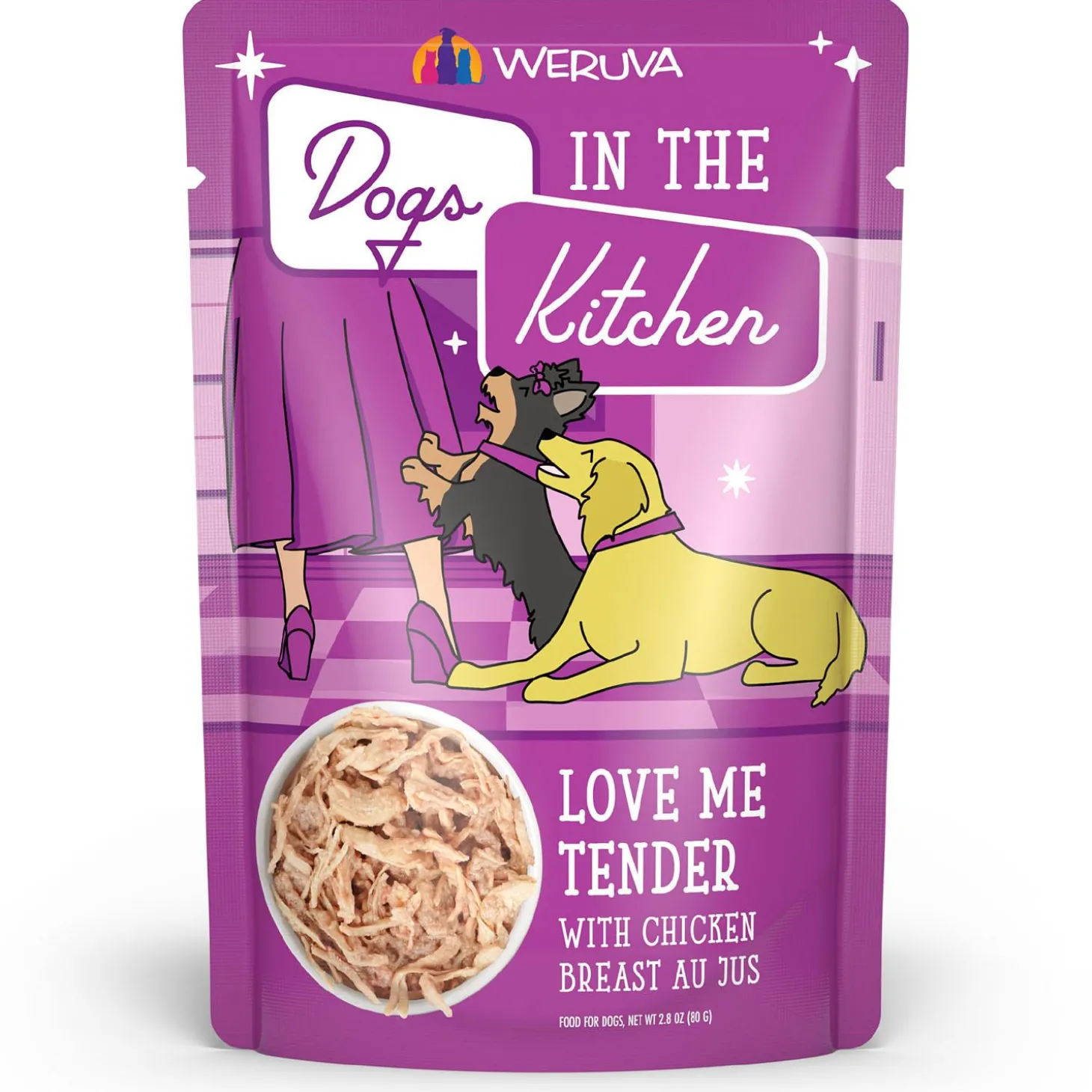 Weruva Dogs in the Kitchen Love Me Tender with Chicken Breast Adult Dog Food is made with premium cage-free chicken in a flavourful au jus, this high-protein pouch is perfect for picky eaters who love pouches. Your pooch will fall head over paws for this tasty recipe!