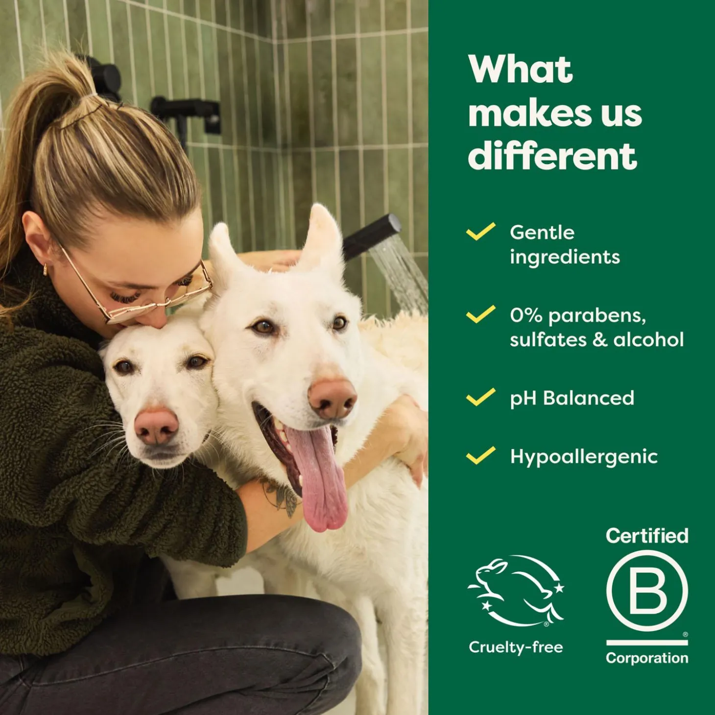 Earth Rated Double Coat 3-in-1 White Tea & Basil Dog Shampoo is tailored for double coats, combining cleaning, conditioning, and deodorizing in one quick step. Its deep-clean nozzle reaches deep into your dog’s double coat to help tackle tangles and shedding. The gentle formulation is free from harsh chemicals and will leave your pup smelling fresh & clean. Formulated with jojoba seed oil to help moisturize the coat. For reliable coat care, because your dog means the world.