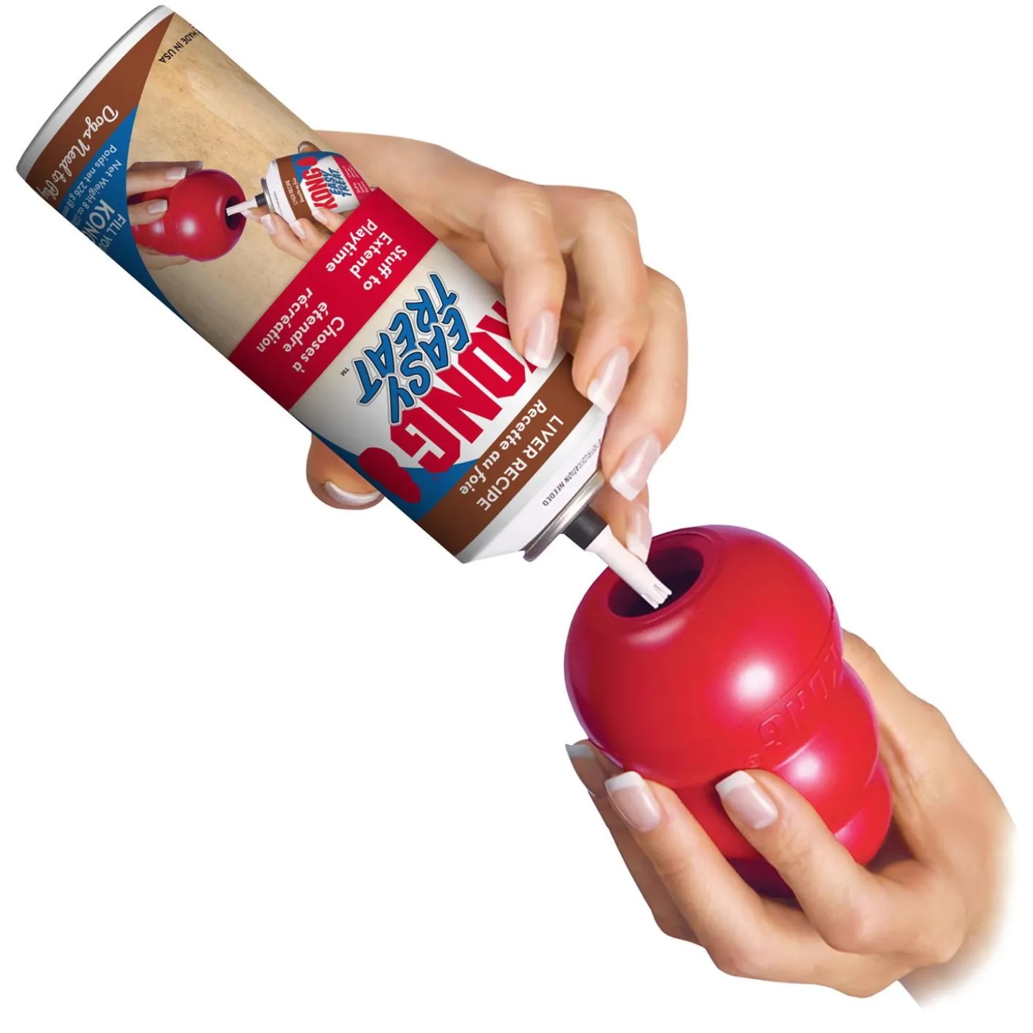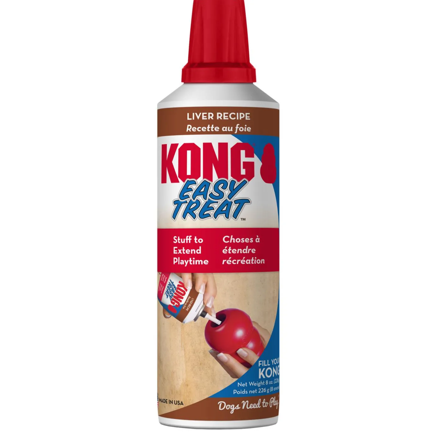 KONG Easy Treat Liver Recipe Dog Treat is a delicious treat that delights all types of dogs while providing an easy no-mess solution for pet parents. Made in the USA, this highly-digestible and trans-fat free treat is an enticingly delicious addition. A uniquely designed nozzle easily controls the amount of KONG Easy Treat while also having the added benefit of a convenient, no mess stuffing solution. No Refrigeration required.