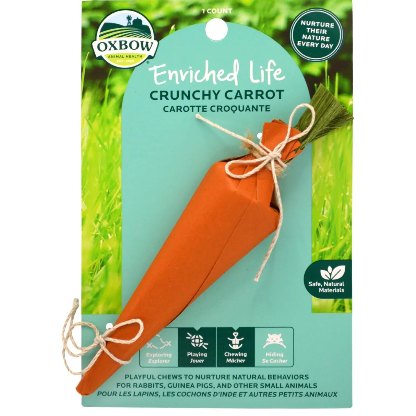 Oxbow Enriched Life Crunchy Carrot Small Animal Toy enriches your pet’s daily life starting with supporting natural behaviours such as playing, hiding, and chewing. Oxbow Enriched Life Crunchy Carrot is designed with these natural behaviours in mind and is constructed from 100% pet-safe materials, allowing you to nurture your pet’s mind and body is safe and fun ways every day.