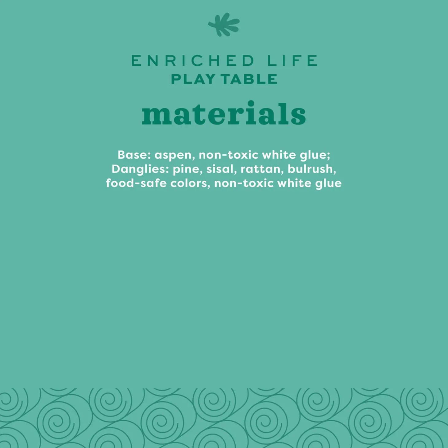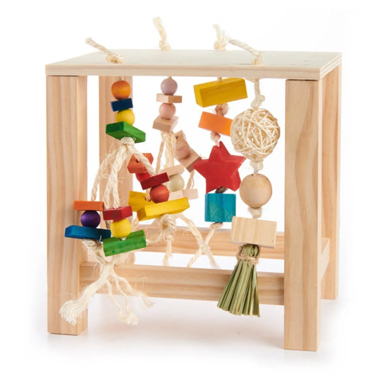 - Danglies: Untreated Pine, Sisal, Rattan, Bulrush, Food Safe colours, Non-toxic White Glue