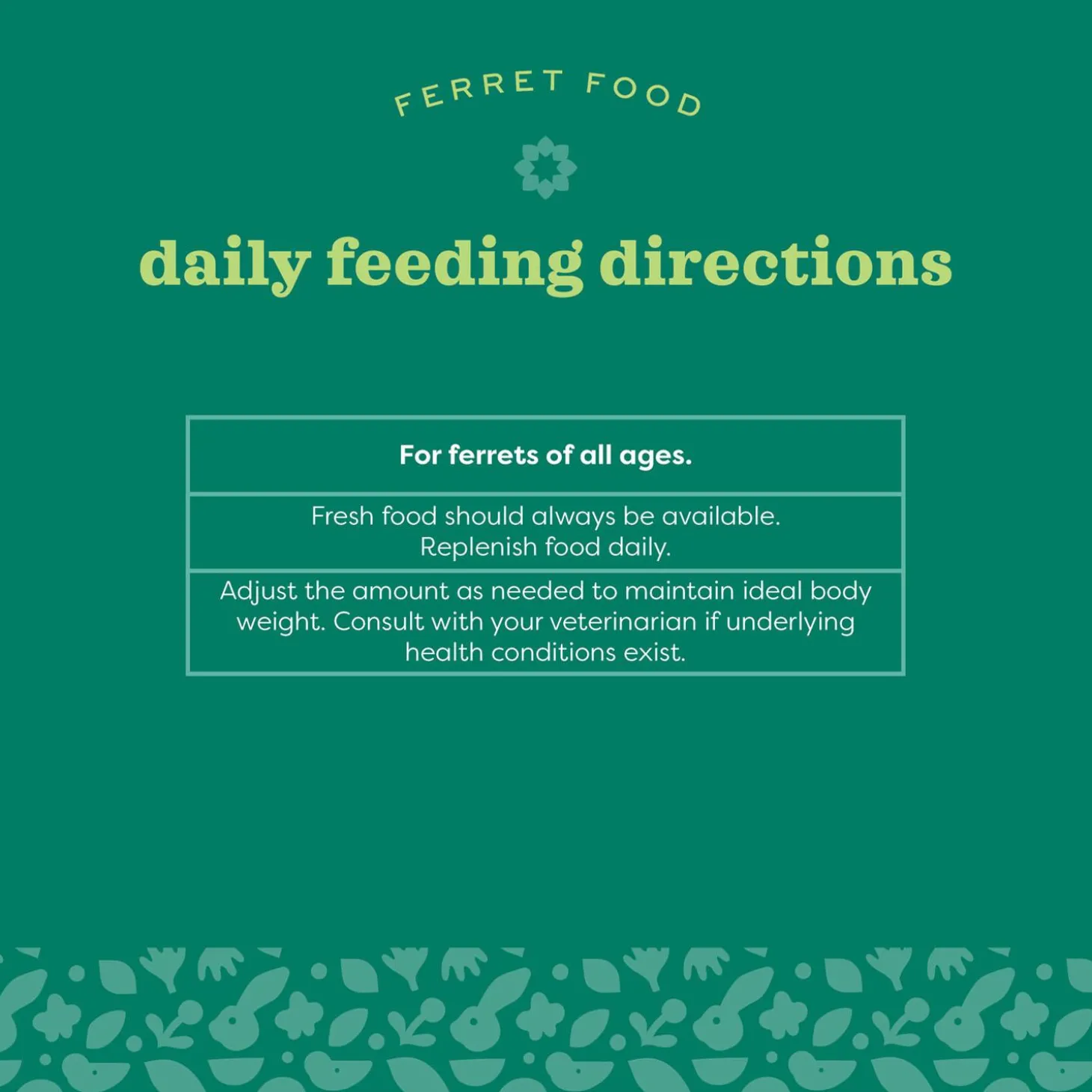 - No corn, peas or potatoes – supports your ferret’s specific nutritional needs