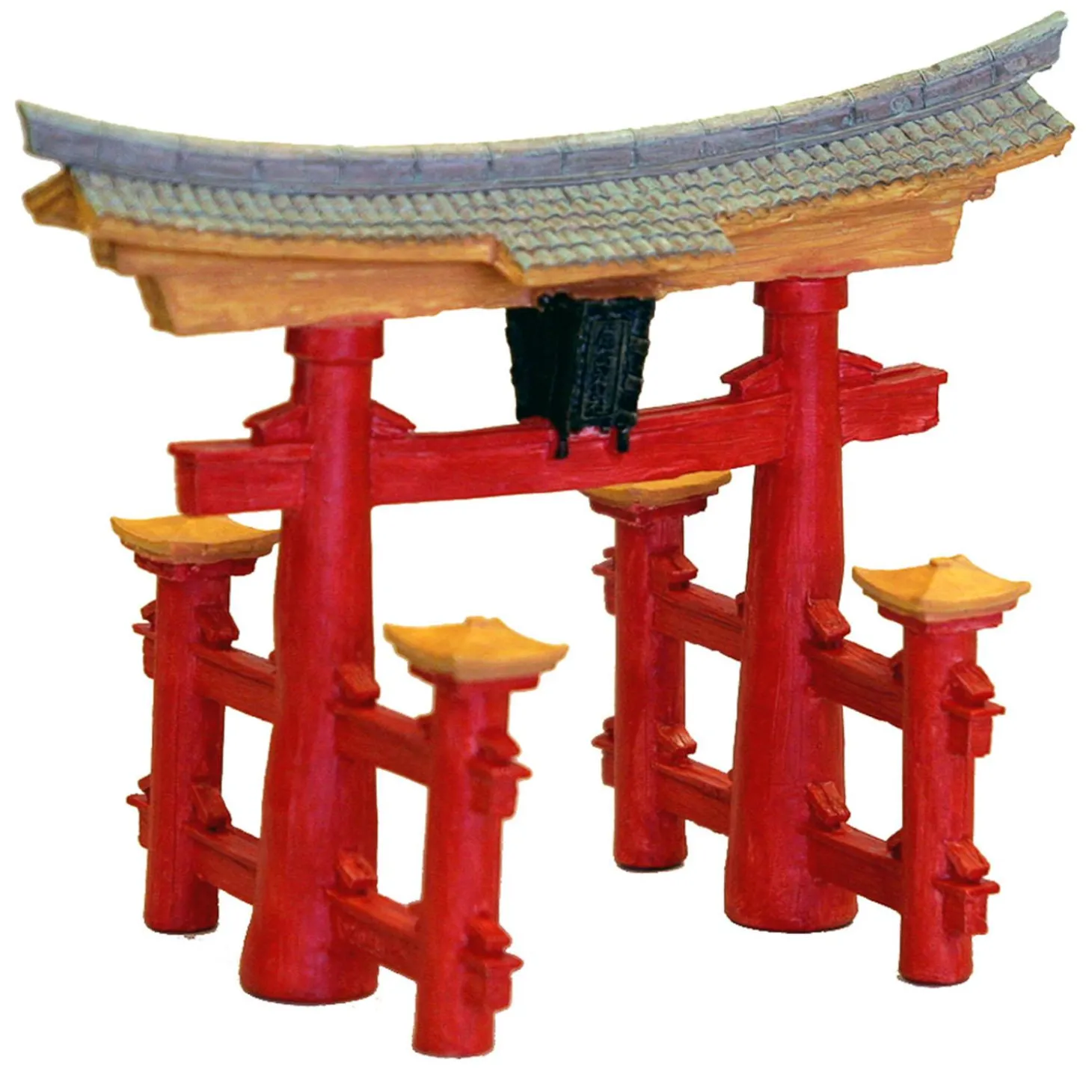 Blue Ribbon Exotic Environments Japanese Torii Gate Ornament is a realistically hand-crafted environment that is a beautiful addition to any aquarium. Hand-sculpted in precise detail and produced in durable & safe poly-resin. The realistic colours are safe for all freshwater and marine aquarium habitants. Features a large open center swim-through.