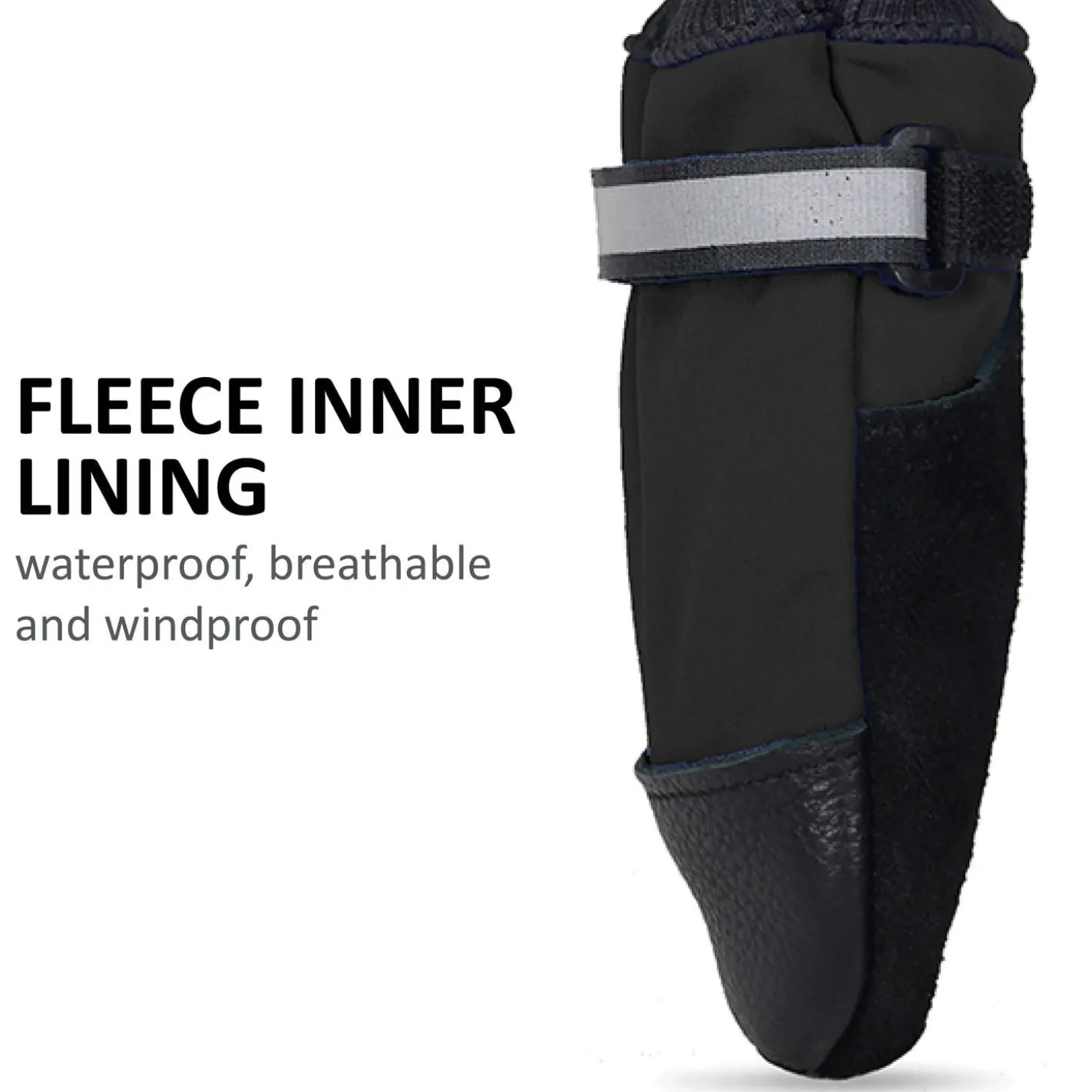 Protect your pet’s paws with Muttluks featuring a fleece inner lining and leather soles and toe protection (leather toe protection sizes M-XXL only). Boots have self-tightening reflective straps, which allows for quick, easy, secure fastening. Comfortable stretchy leg cuff can be rolled up or down for short or long lengths. Machine washable. Sold as a set of four. Proudly designed and made in Canada.
