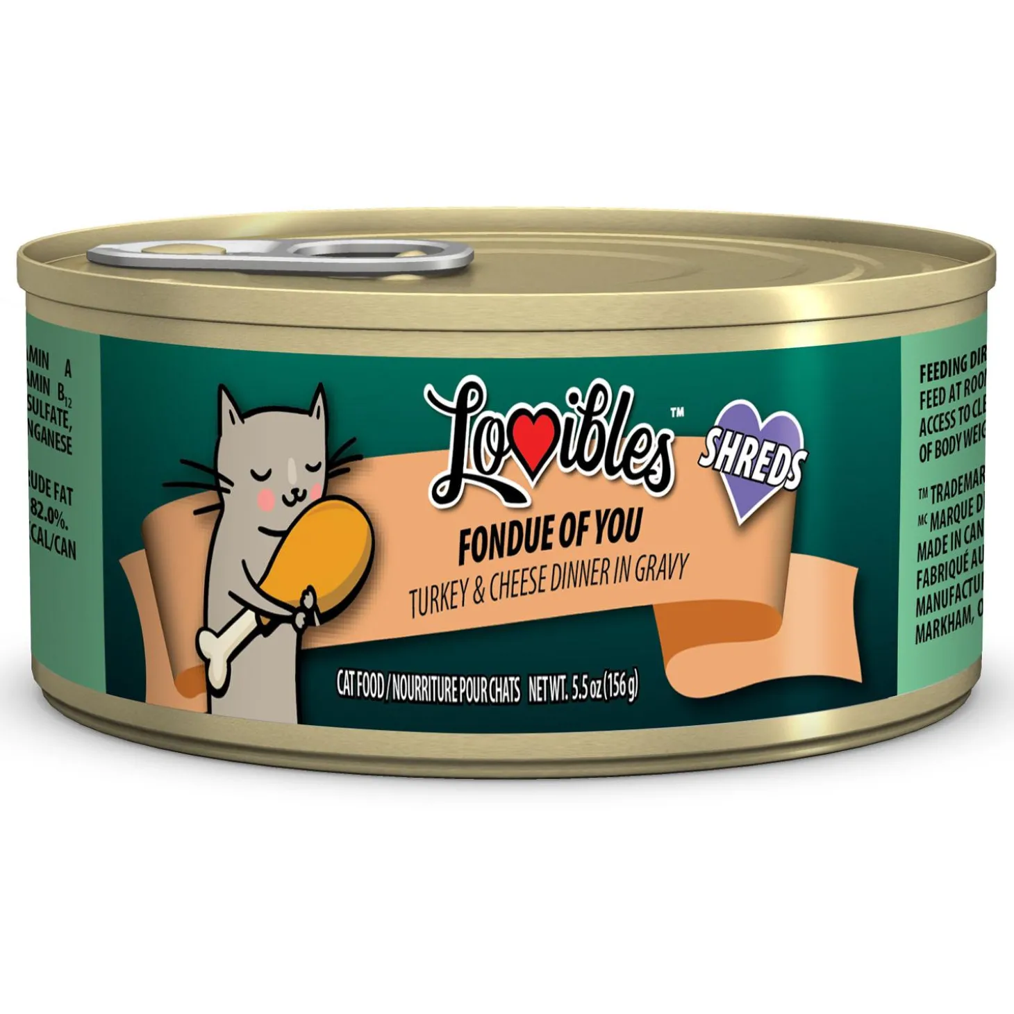 Lovibles Fondue Of You Shredded Turkey & Cheese Dinner in Gravy Cat Food has a Taste They’ll Love at a Price You’ll Love! Your kitty will never get bored with all the different Lovibles flavours and textures. Doesn’t matter the size of your feline family, there’s enough love to go around. No matter which flavour you choose, it’ll be love at first bite!