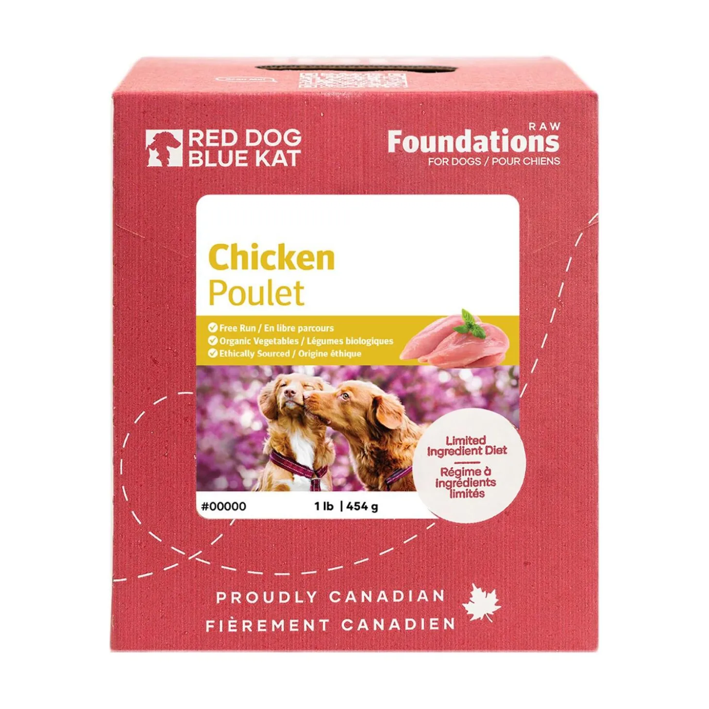 Red Dog Blue Kat Chicken 4 Pack Dog Food is made from human grade, non-medicated whole chickens. The ground bone has been kept in this meal for extra calcium and healthy teeth. This chicken food also contain chicken organs and organic vegetables. Poultry provides several key whole food ingredients. Because poultry bones are small and hollow, they can be ground down into the food. Bones are the number one source of calcium in the canine raw diet. Poultry ground with bone is great for pets of all life stages to ensure healthy bone growth and maintenance, nervous system health and much more It’s a great meal for underweight dogs and puppies.
