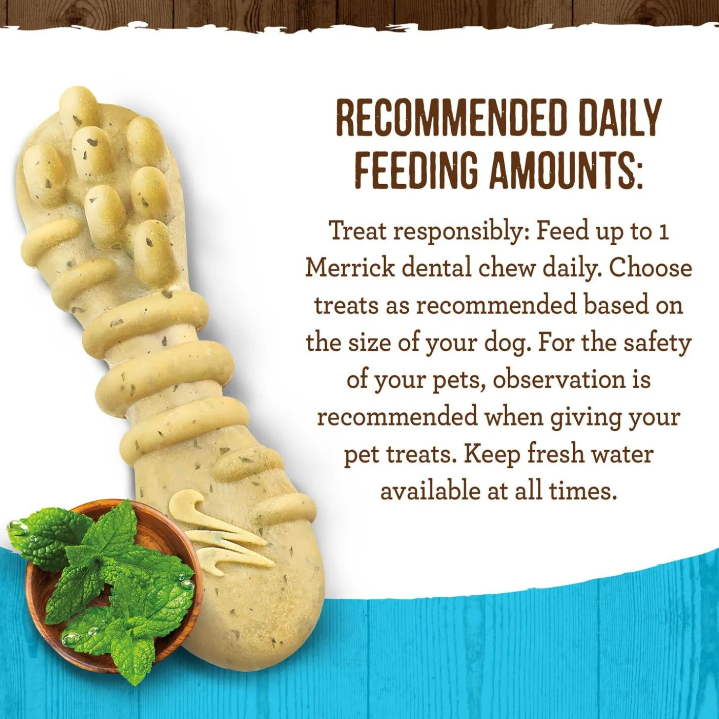 - Merrick dog treats that feature a unique double brush design are perfect for dog teeth cleaning and as a dog breath freshener like no other dog dental treats