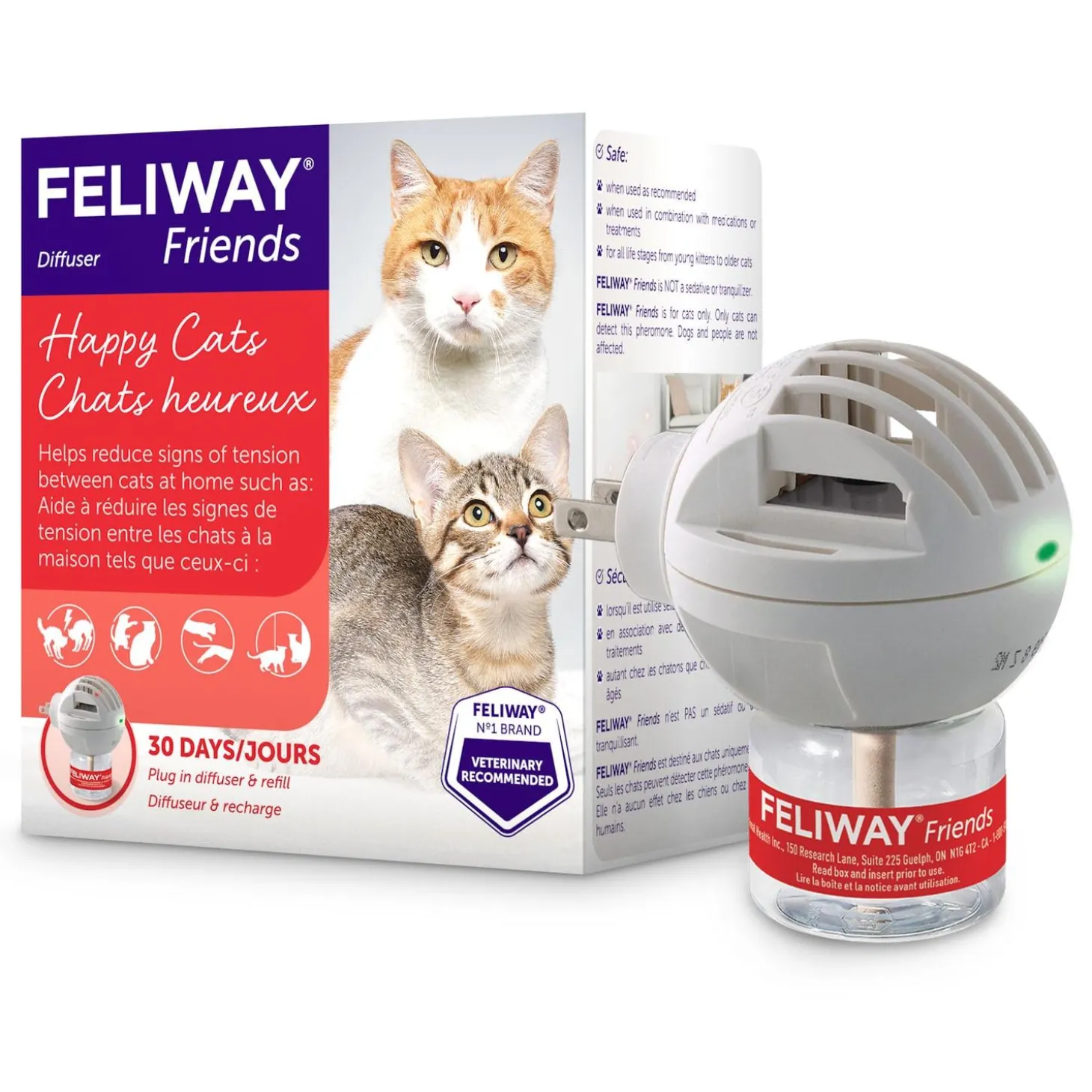 FELIWAY Friends Diffuser & Refill Starter Kit promotes calmness between cats in multi-cat households, including where tension and conflict may be occurring. FELIWAY Friends is clinically proven to help improve your cats’ well-being, with a hassle-free setup and backed by decades of expertise.