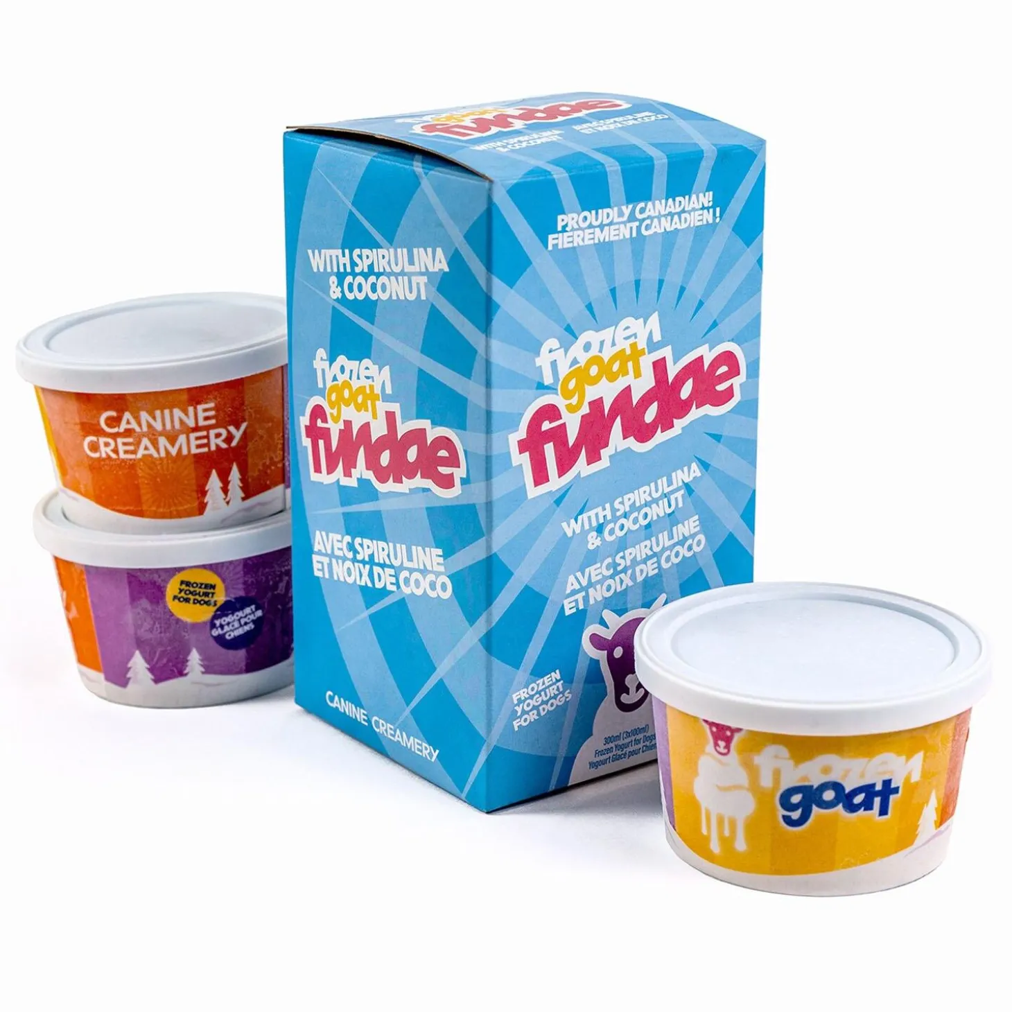 - Frozen Goat Spirulina & Coconut Fundae Dog Treats – 3 x 100ml (3.4oz) portioned cups