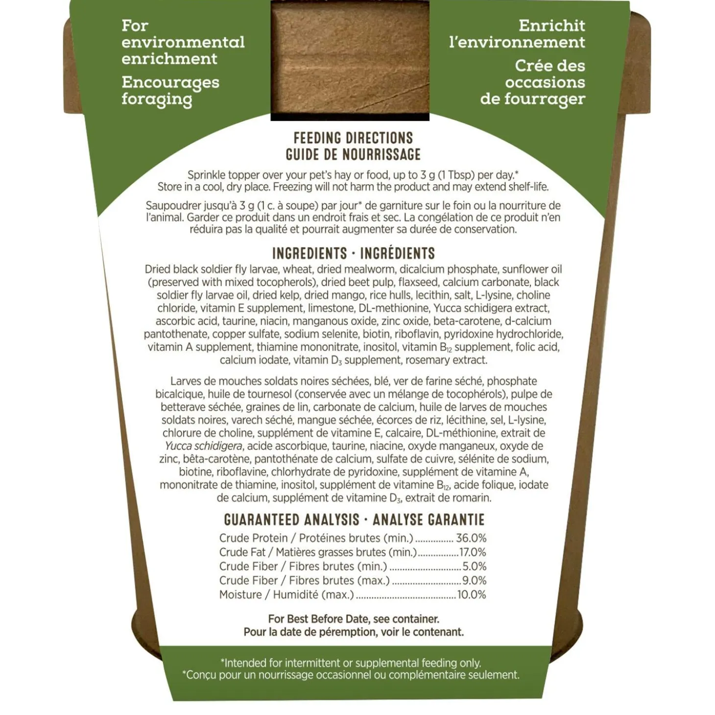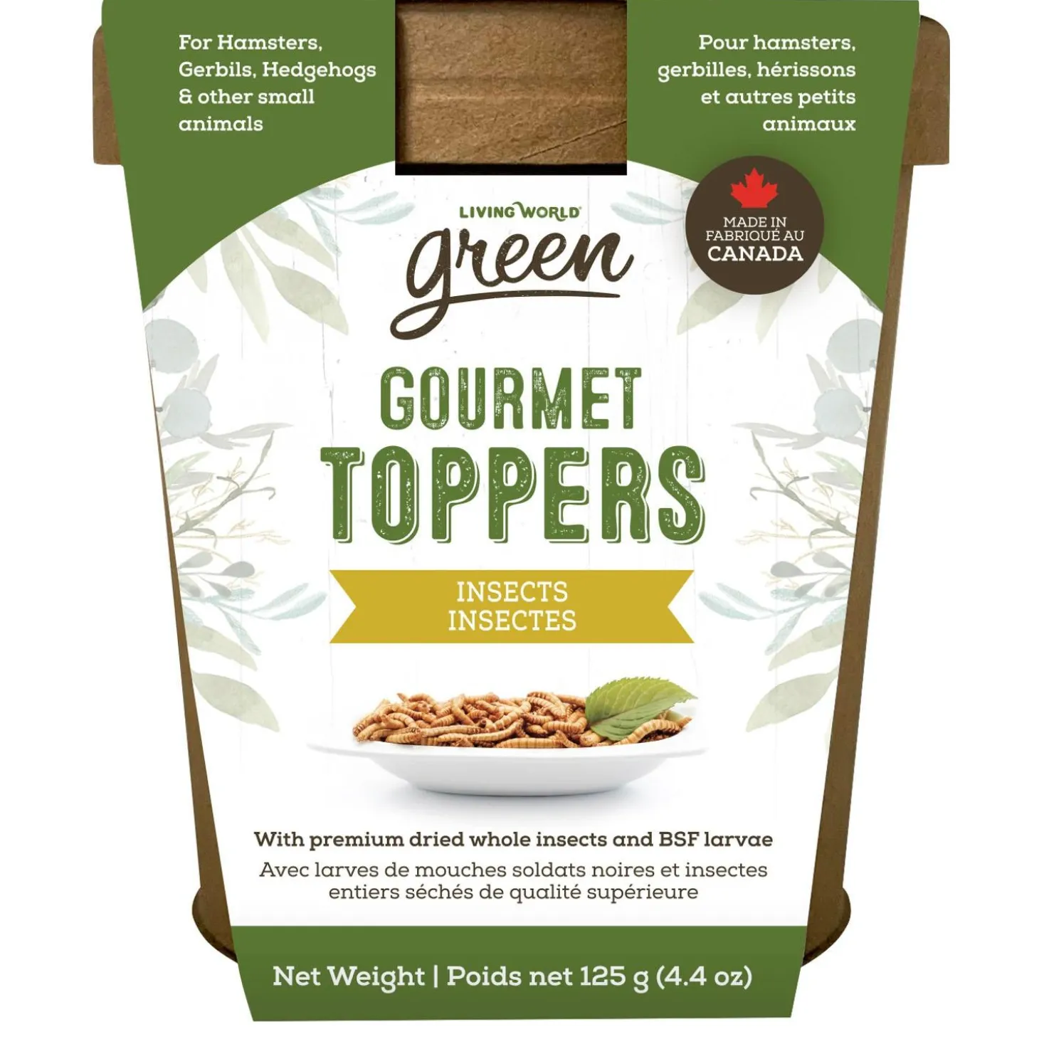 Living World Green Gourmet Insect Toppers Small Animal Treats enhances the texture and flavour of your small pet’s next meal. Sprinkle on top of hay or food to add variety and encourage foraging or simply serve alone as a treat. This meal add-on is highly palatable, and include taste-tempting ingredients that appeal to small animals.