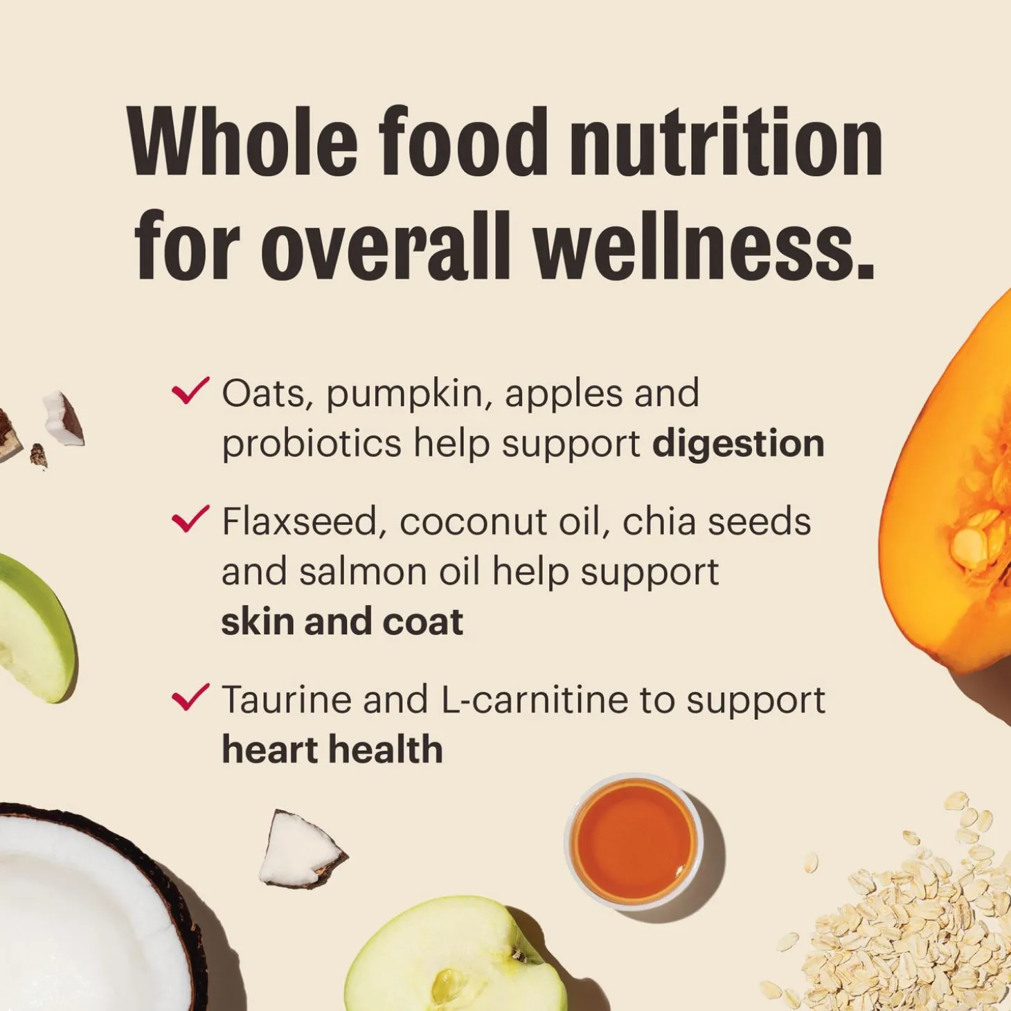 - Crafted with a vet nutritionist to maximize nutrition from real foods that support overall wellness, including beneficial fats, antioxidant-rich veggies and probiotics