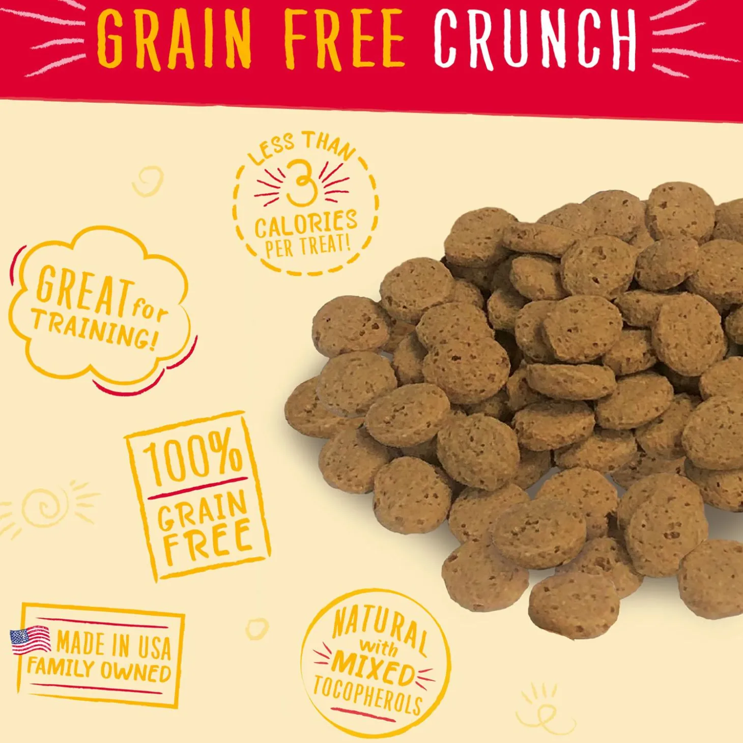 - Grain free, low-fat treats are less than 3 calories per treat, so they won’t disrupt your pup’s diet