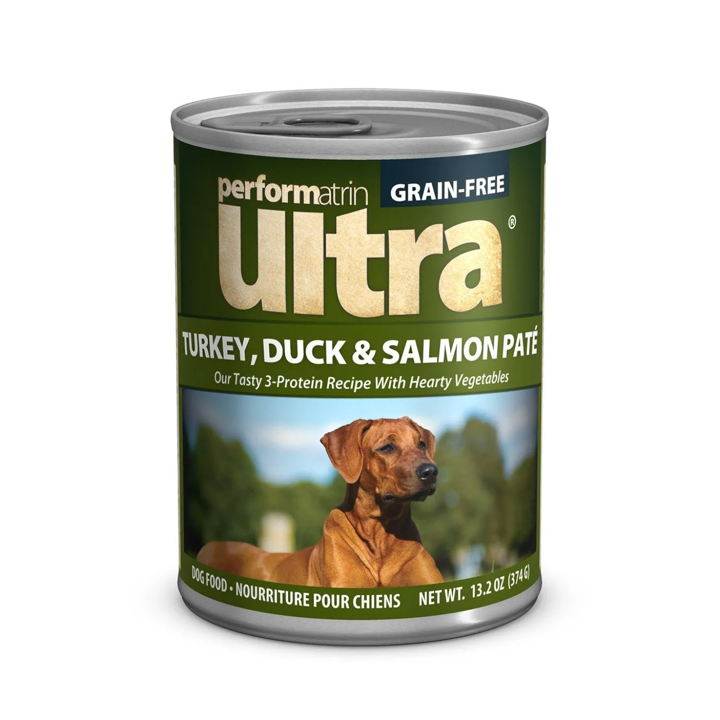 Performatrin Ultra Grain-Free Turkey, Duck & Salmon Pate Dog Food embraces holistic nutrition. This grain-free recipe contains a variety of proteins including turkey, duck and salmon, with no artificial colors or flavors. Meets your dog’s daily requirements and promotes whole body health and wellness.