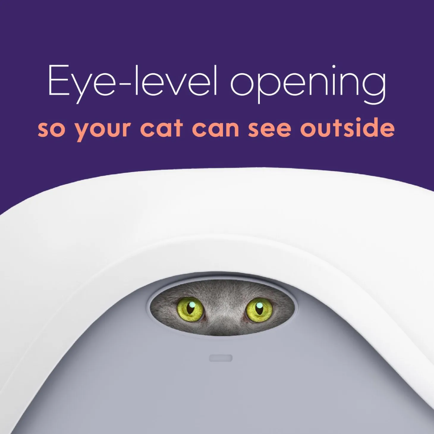 - Eye-level opening: clearance above the Litter Box handles, so your cat can see what’s going on outside