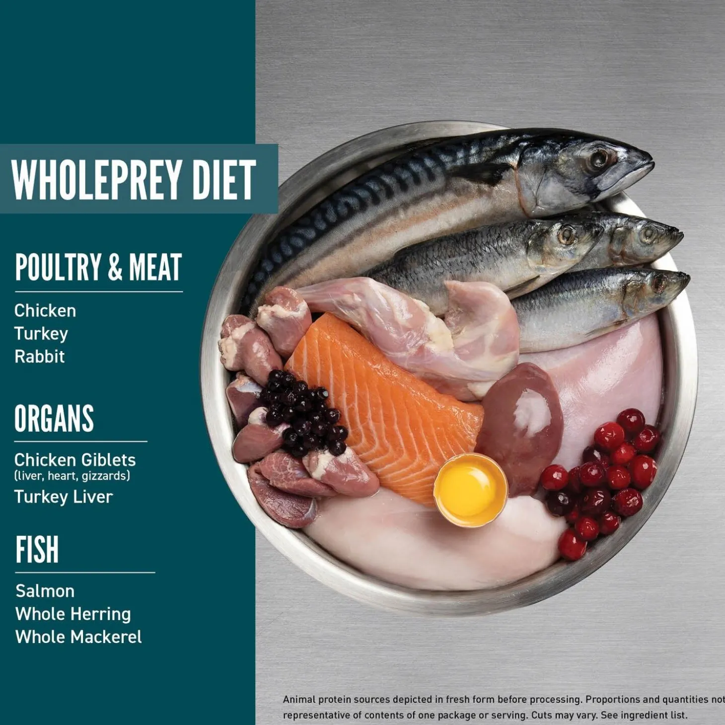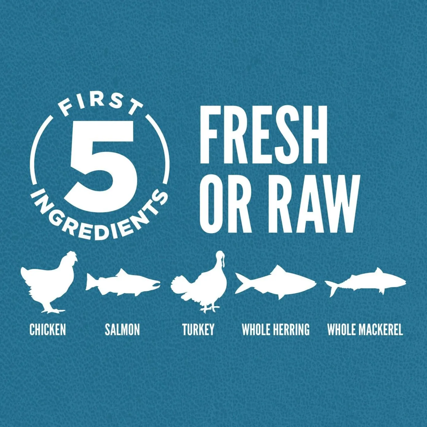 - The first 5 ingredients are fresh or raw poultry and fish ingredients. The fresh ingredients use refrigeration as the sole method of preservation and the raw ingredients are frozen at their peak freshness.