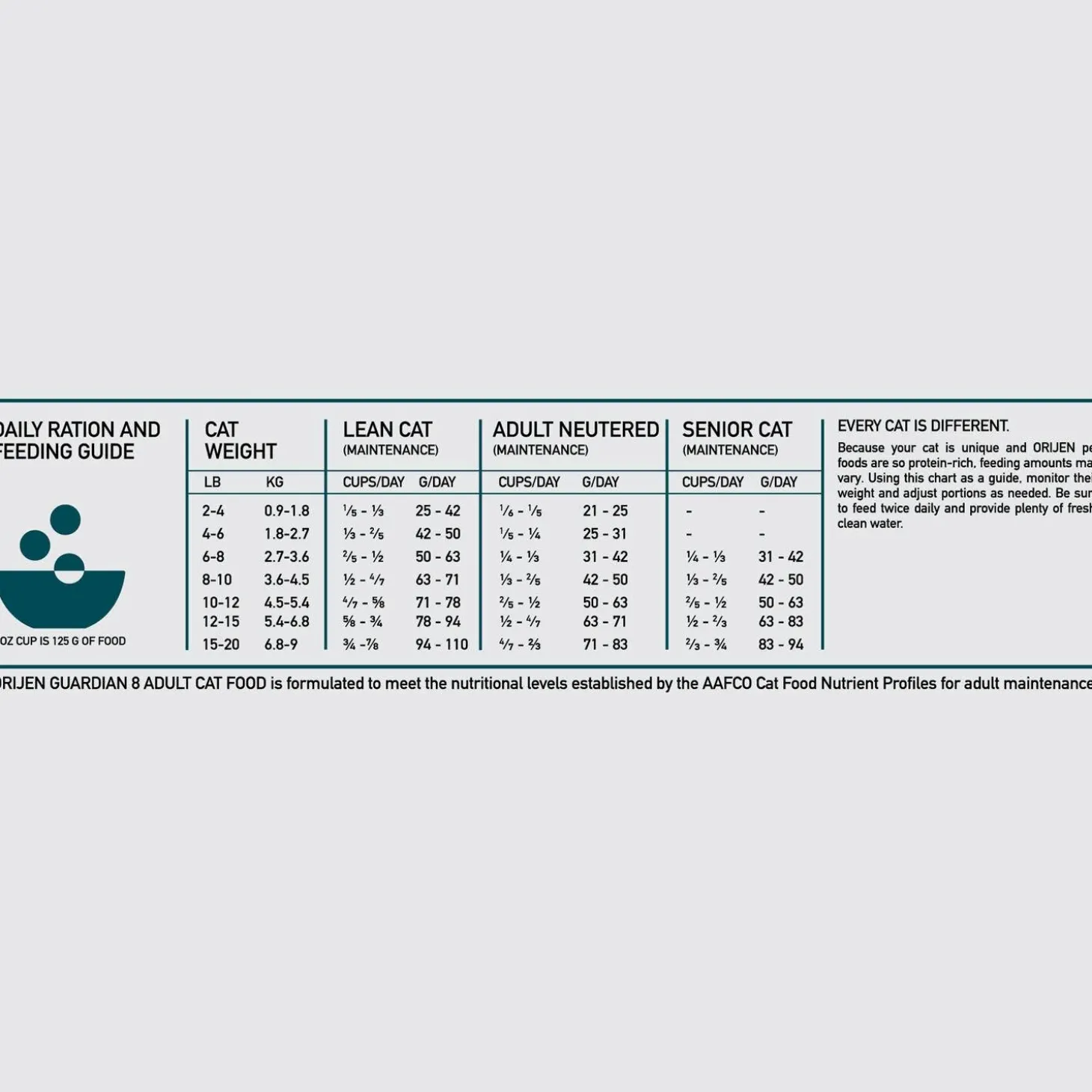 ORIJEN Guardian 8 Formula cat food is a nourishing food specially formulated to address 8 common cat ailments through quality ingredients. Because of the abundance of fresh and raw WholePrey animal ingredients in this diet, less supplementation is needed to support your cat’s health for a lifetime. With 90% premium animal ingredients, and 2/3 of those being fresh and raw, Guardian 8 contains nutritious ingredients that help support your cat’s overall health with 8 benefits. These benefits include immune support, digestive health support, healthy skin & coat support, muscle maintenance, heart health, joint health, brain & cognitive function, and eye health.
